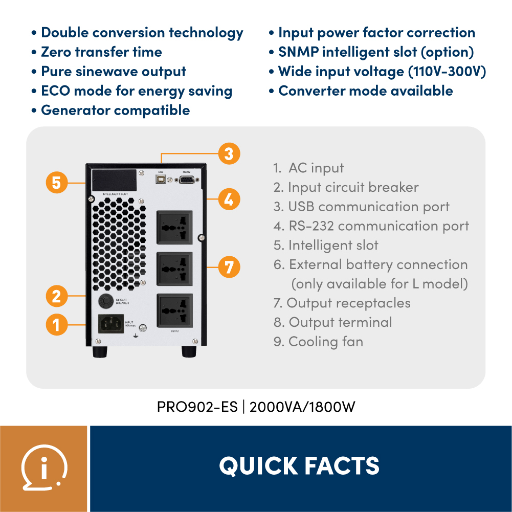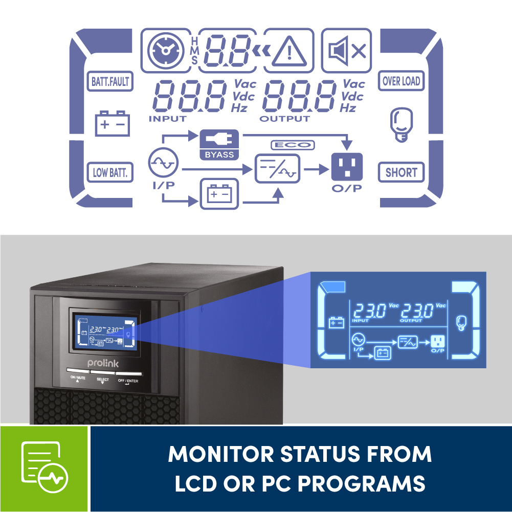 Prolink 2KVA / 1800W Pure Sine Wave Online UPS w/ AVR Computer Server Medical Equipment Backup Power