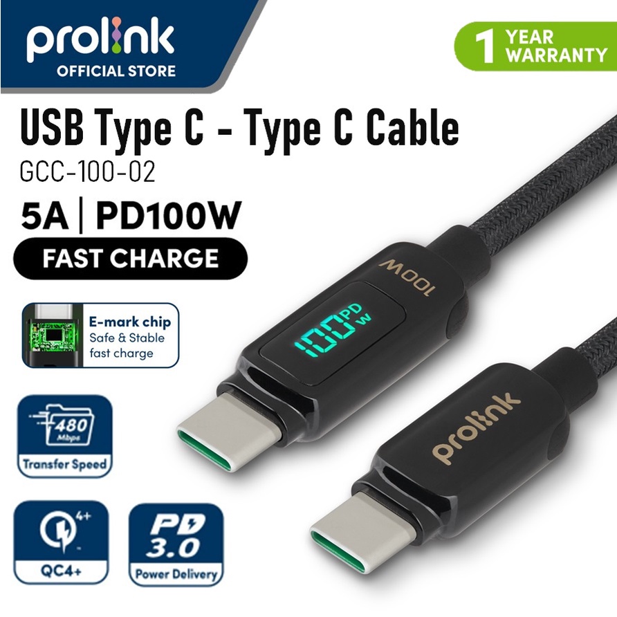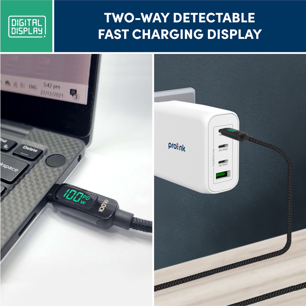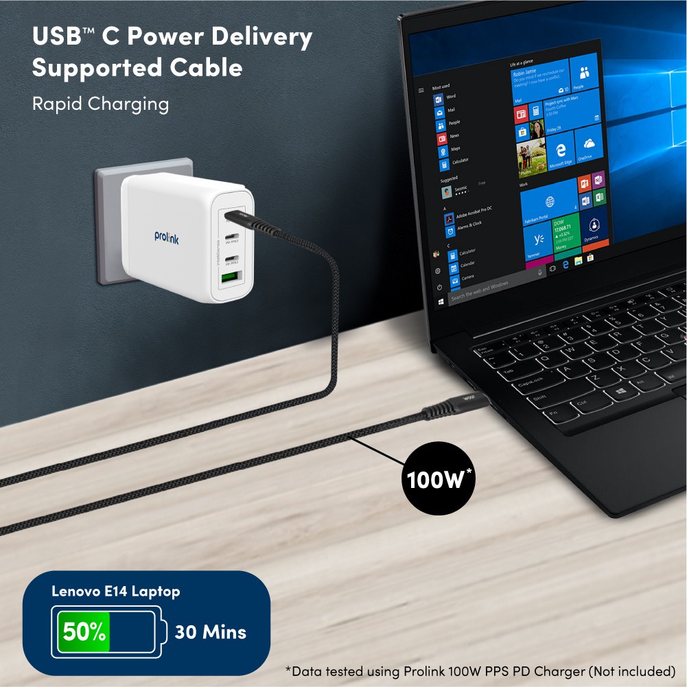 Prolink Fast Charging USB Type C to C 100W Data Transfer PD Cable Nylon Braided