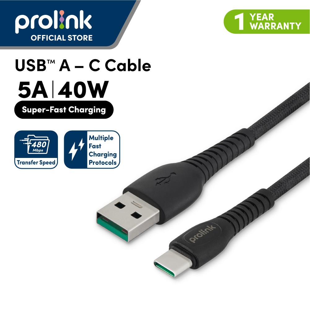 Prolink GCA-40-01 5A Super Fast Charge USB A- C Cable (5A|40W |1m) Android Phone Data Transfer Cable