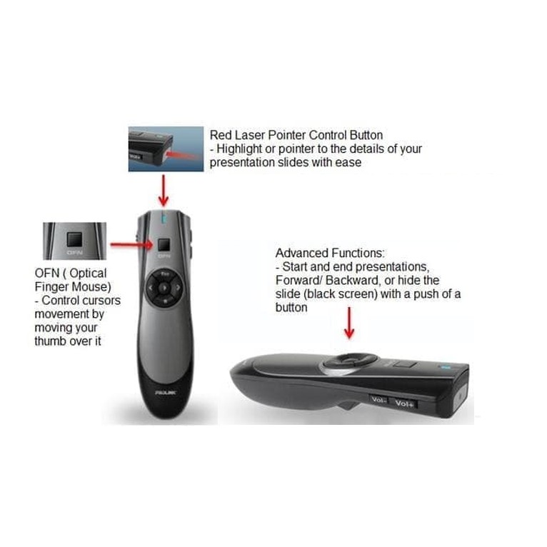 Prolink PWP102G Wireless Presenter with Air Mouse Red Laser for Laptop & Computer | Presentation Pen