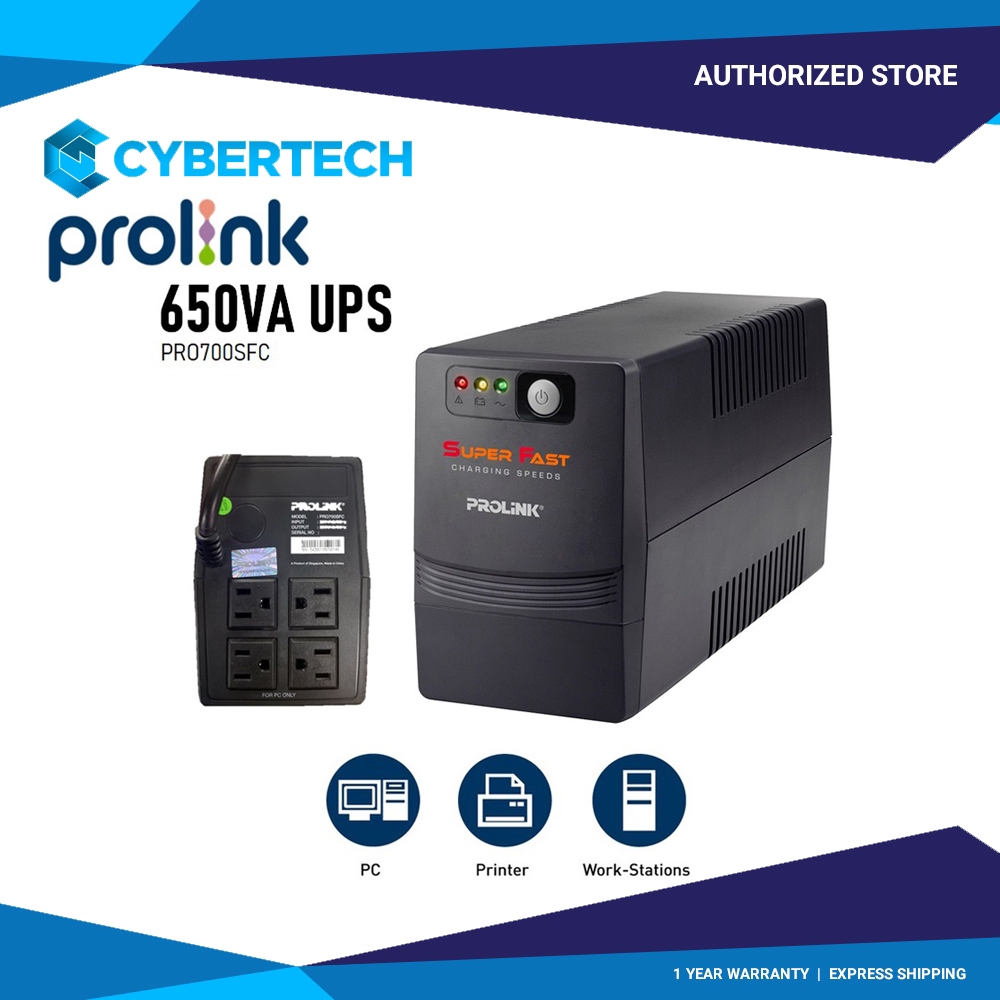Prolink PRO700SFC 650VA UPS Super Fast Charging Line Interactive With Built In AVR 140-300Vac Pc