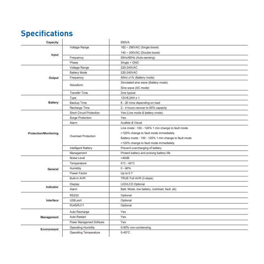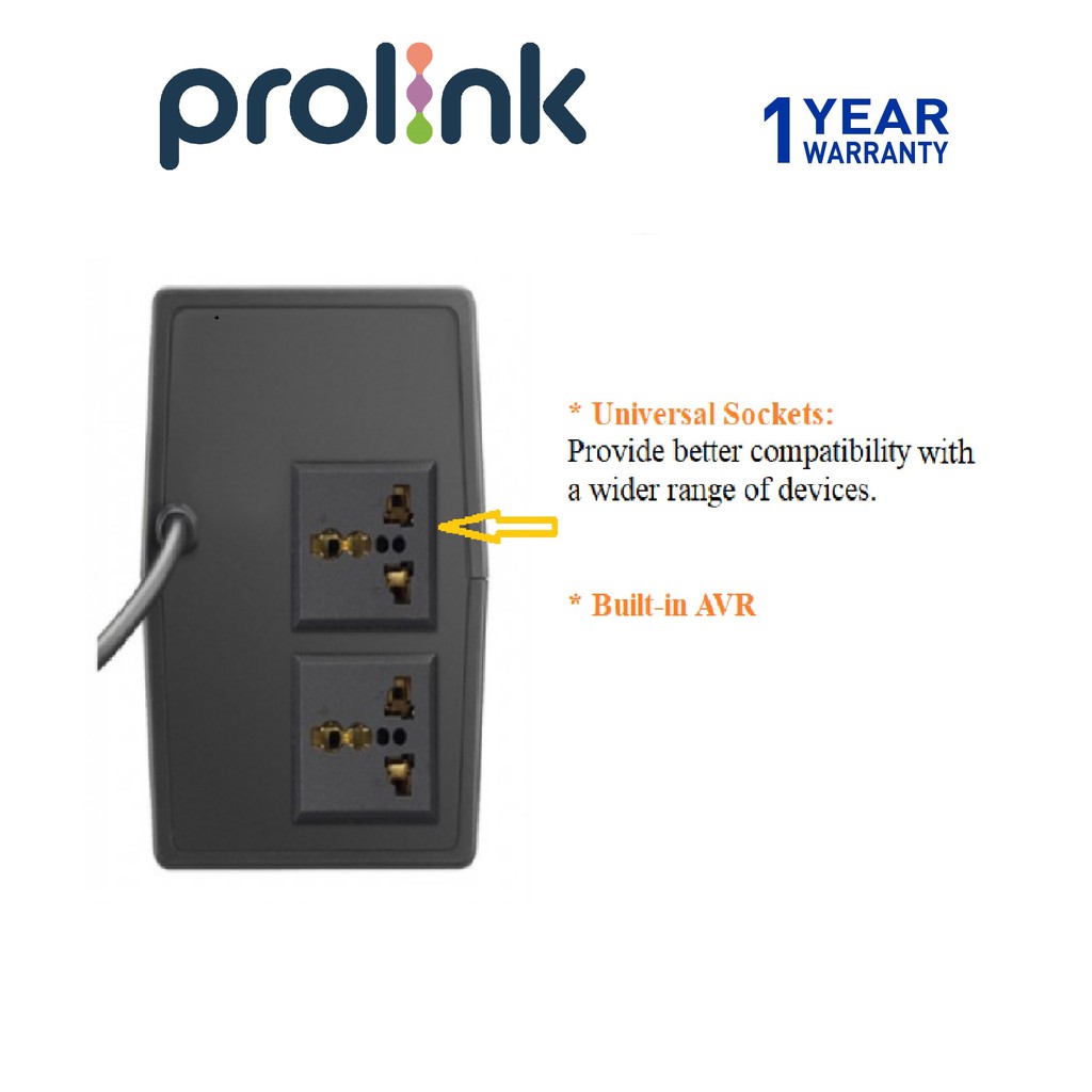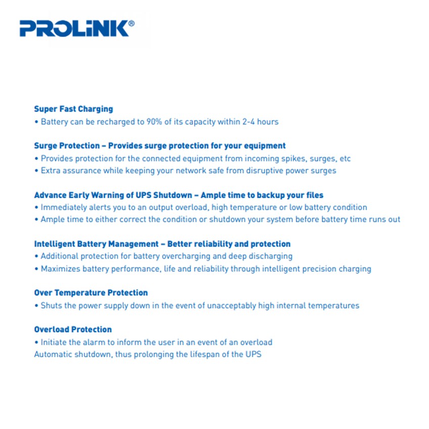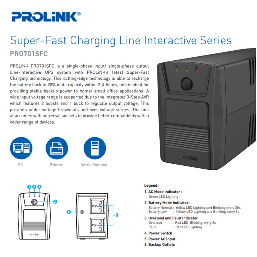Prolink PRO701SFC 650VA UPS Power Supply Line Interactive With Fast Charging Built-In AVR For PC
