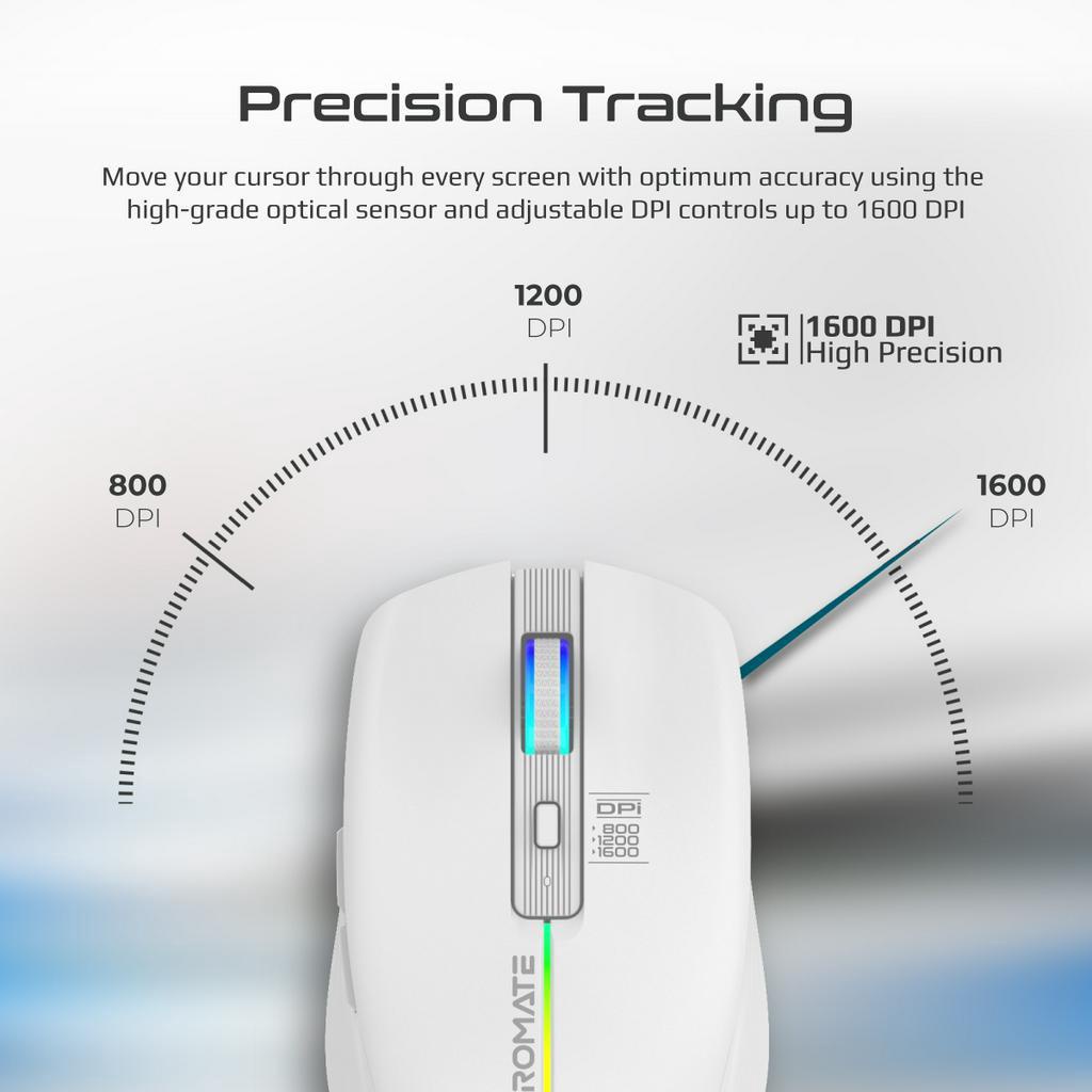 Promate Kitt 2.4GHz Wireless Ergonomic Optical Mouse with LED Rainbow Lights