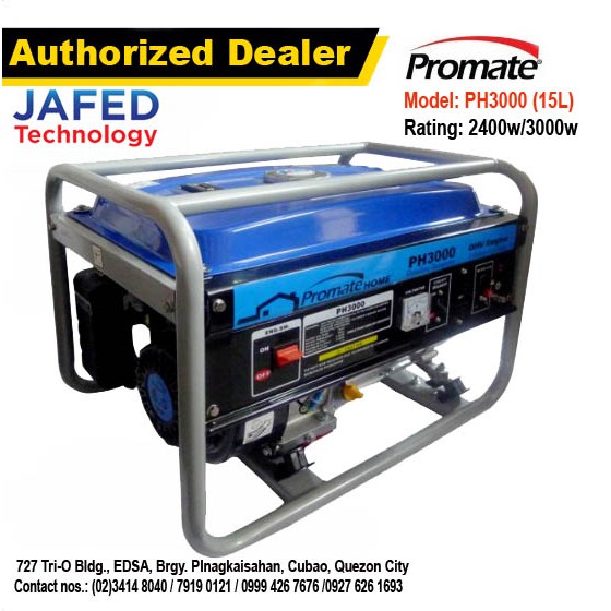 Promate PH3000 Portable Gasoline Generator 2400W/3000W 6.5HP 15L Tank Recoil Starter