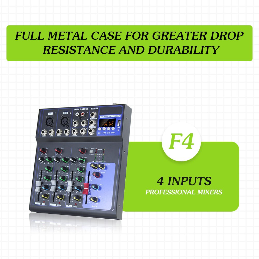 Propesyonal na Audio Mixer 7/4 channel subwoofer Mixer F7 / F4 USB audio mixer amplifier bluetooth