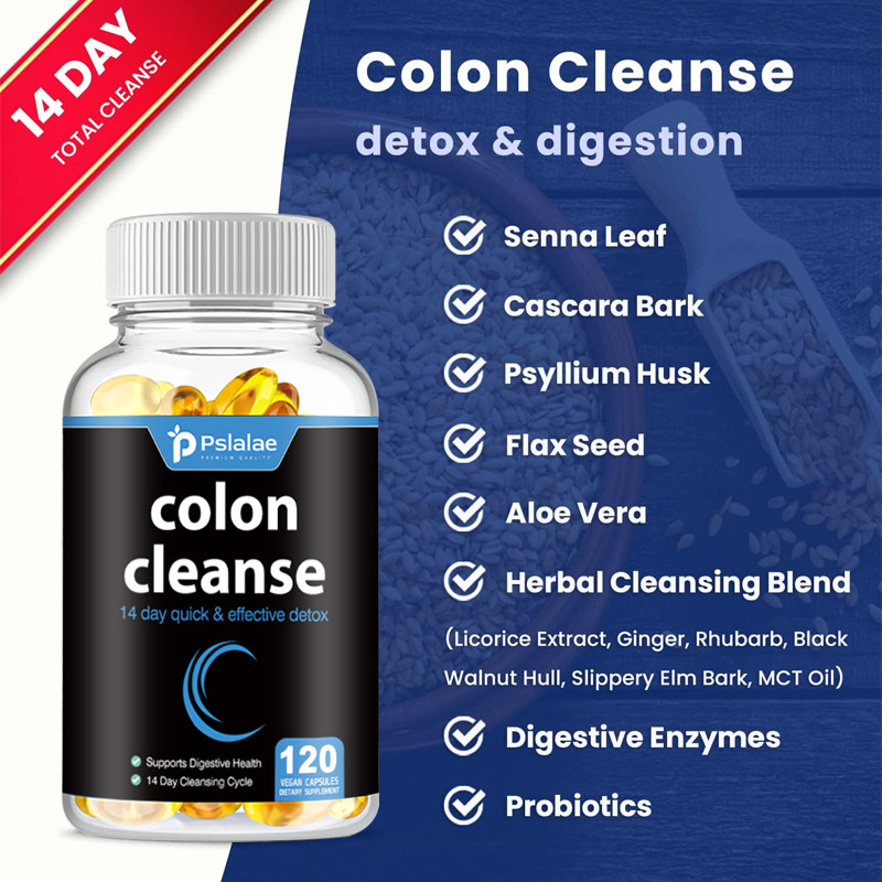 Pslalae Intensive Colon Cleanse with Psyllium Husk Powder, Digestive Enzymes & Probiotics, Senna - Natural Colon Fiber Supplement - 10/30/60/120 Capsules