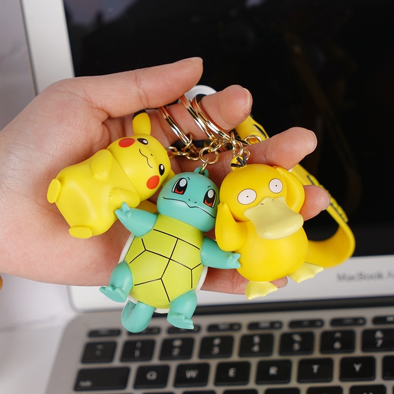 Psyduck Squirtle Pokemon Car Key Rings Pikachu Keychain Pokemon Action Figure Pendant