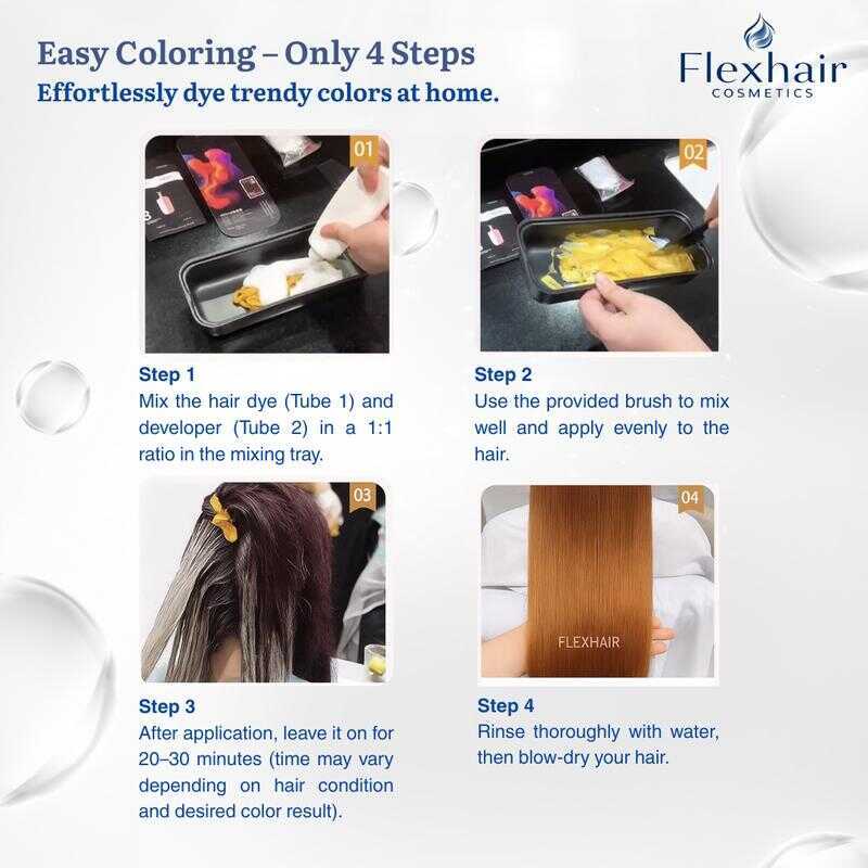 [Fda Approved] FLEXHAIR Permanent Color Cream – 4 Trendy Shades: Latte Glow, Hazy Ash Blue, A35