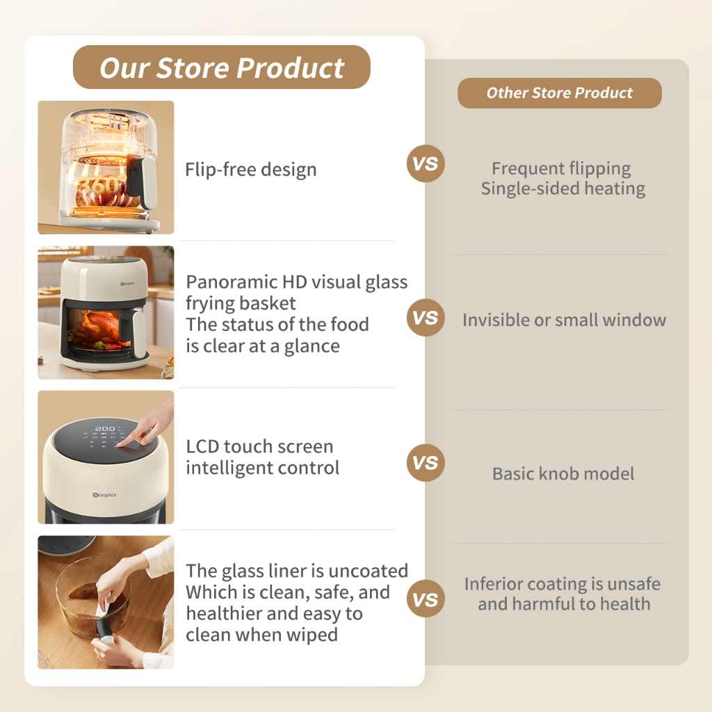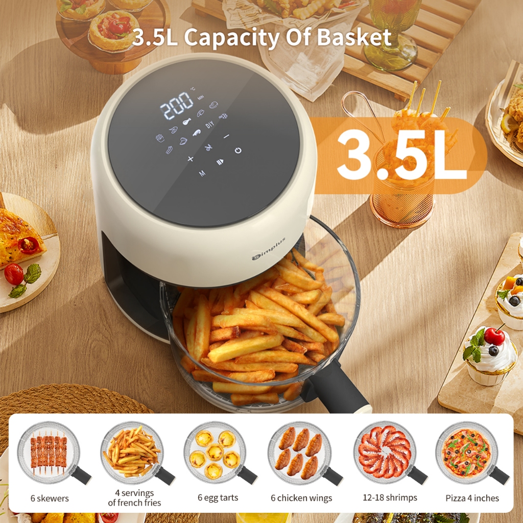 Simplus Air Fryer New Home Use Panoramic Window 3.5L Capacity Smart Touch Fryer KQZG017