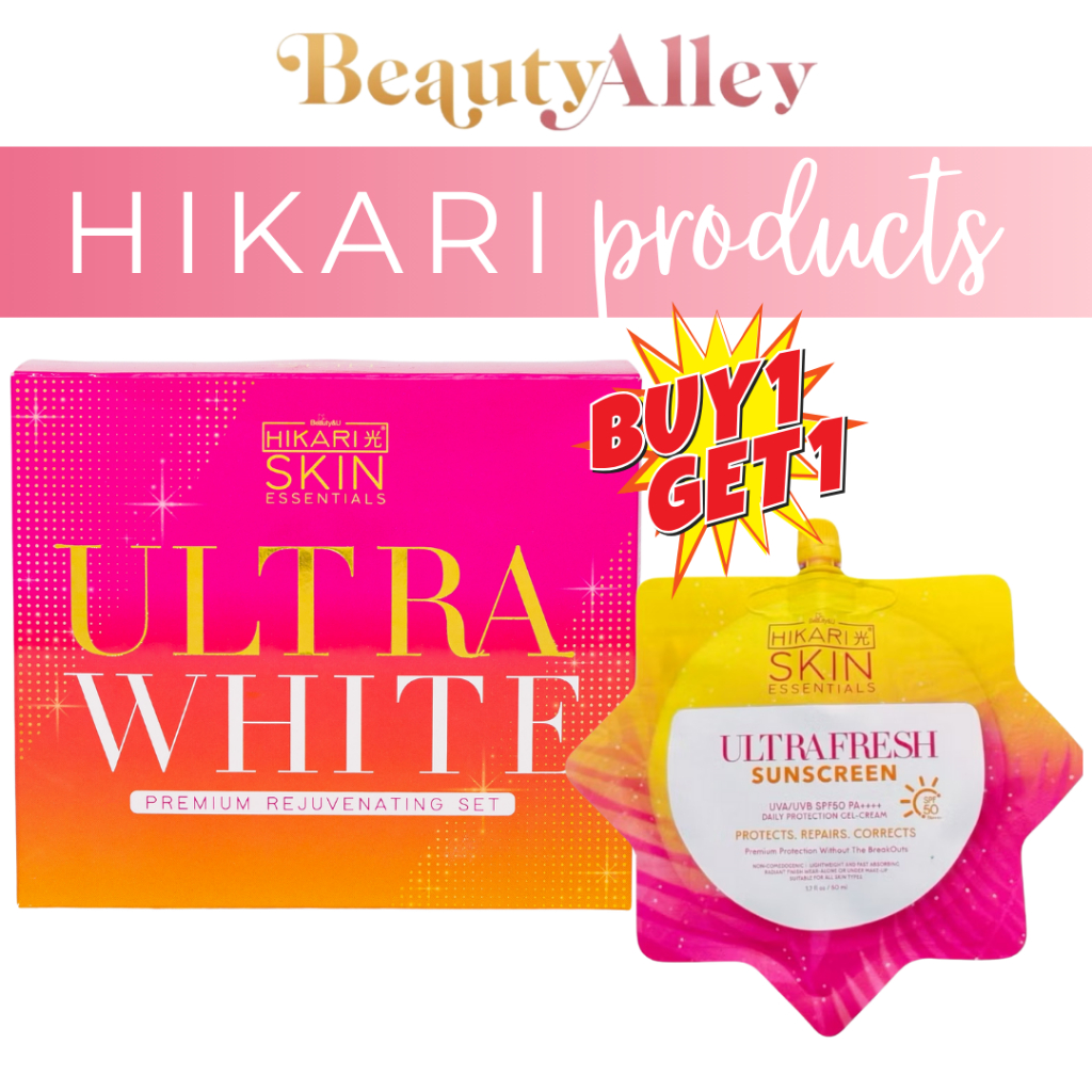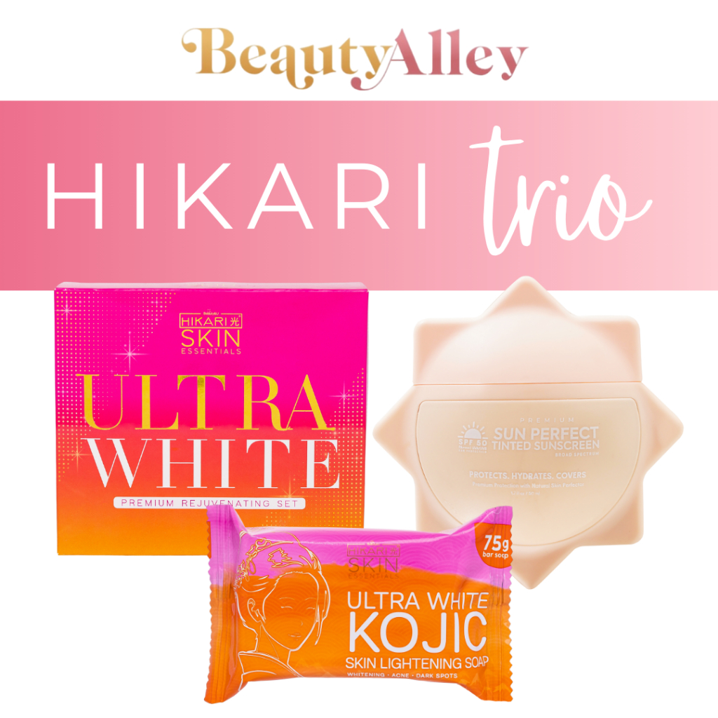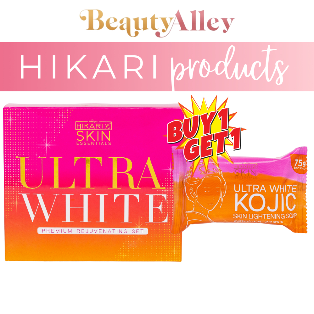 HIKARI Ultra White Rejuvenating Set Sunscreen Kojic Face Tinted Bar Wash Soap Whitening Glutathione