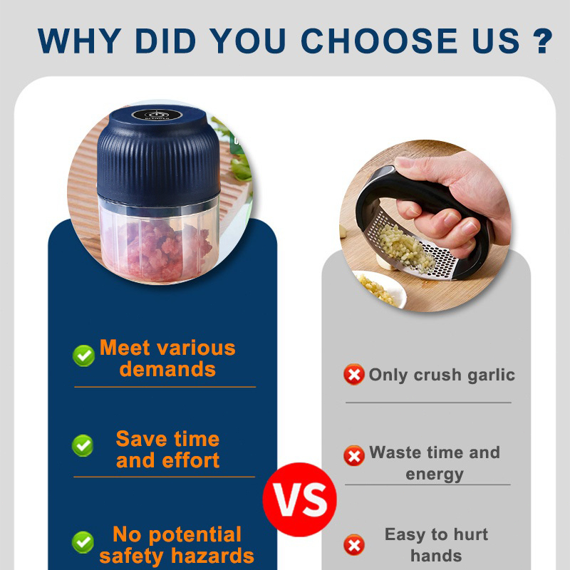 Gesh Garlic Crusher Portable Garlic Chopper 6 Blade Mini Multi Functional Meat Grinder Low Power 40W