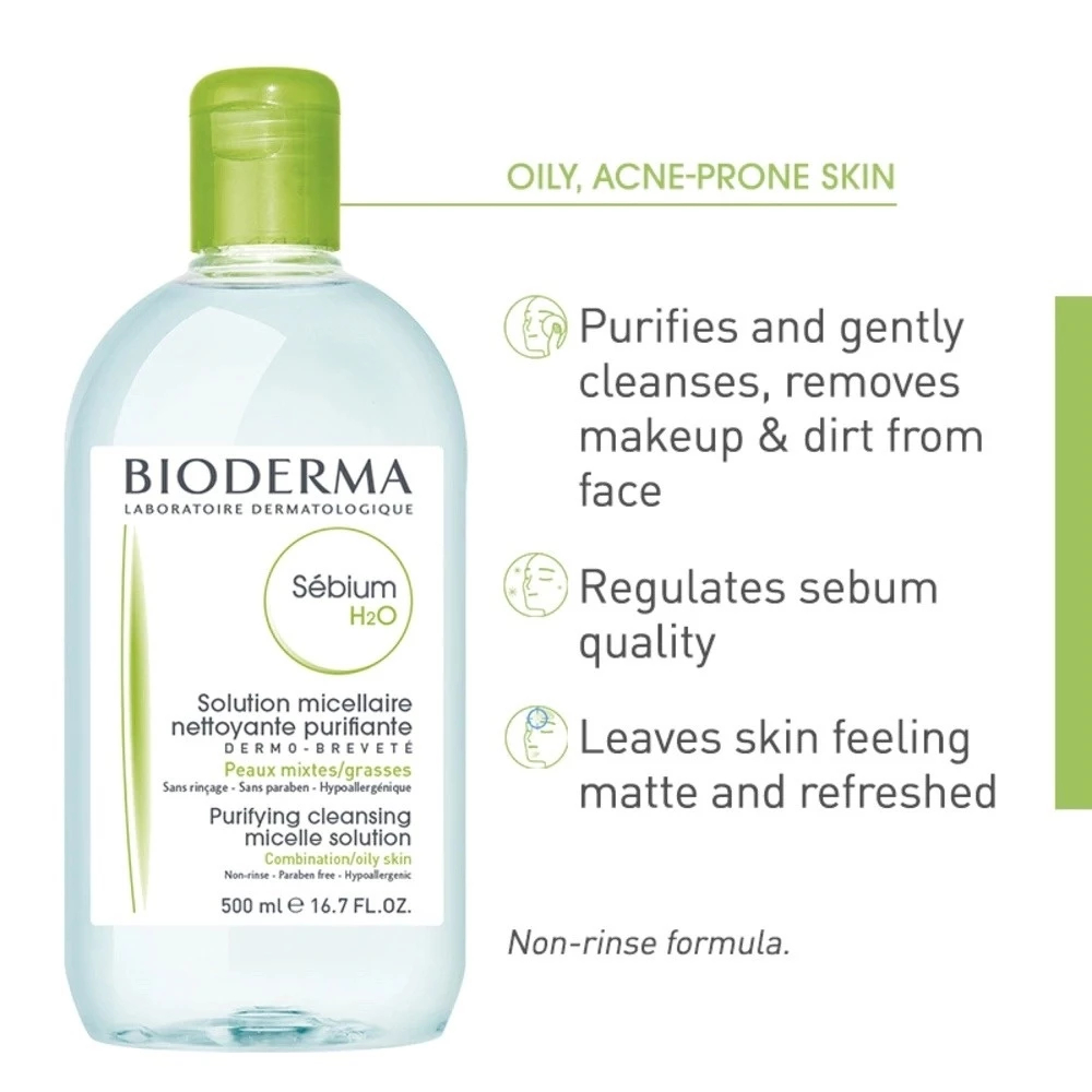 Bioderma Sensibio /Sebium Hydrabio H2O Micellar Water 500ml Makeup Remover Cleansing Water