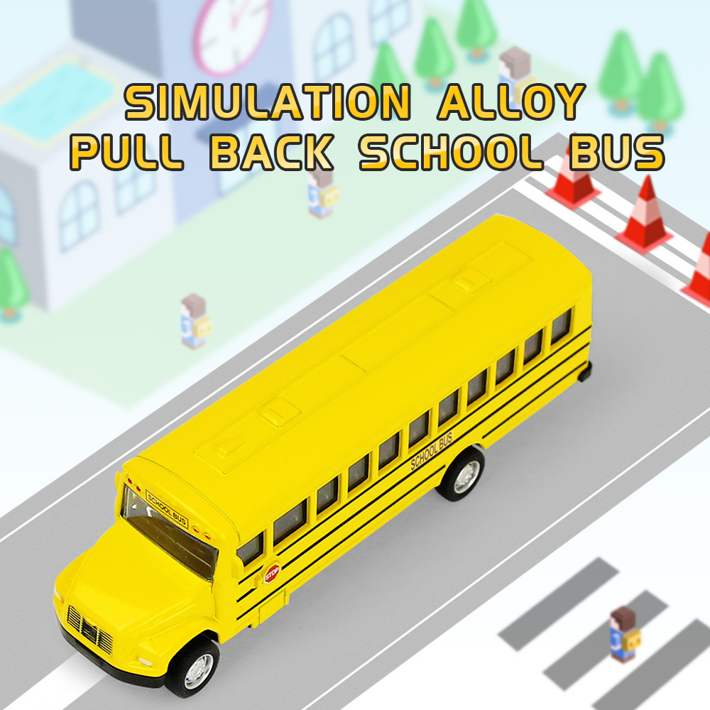 Pull Back School Bus Toy - Alloy Diecast Vehicle Model, Educational Role Play for Kids Birthday Gift
