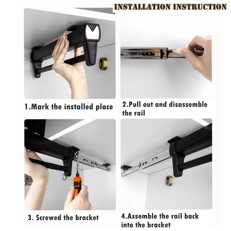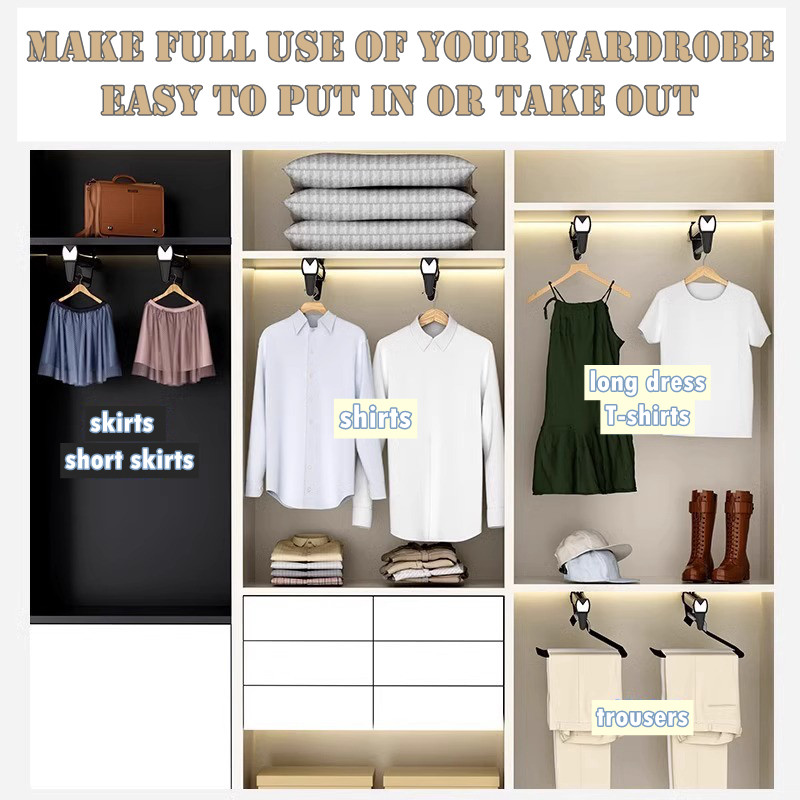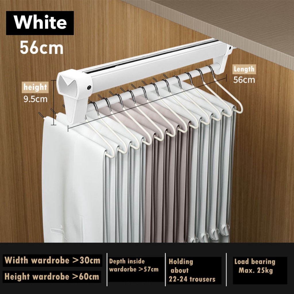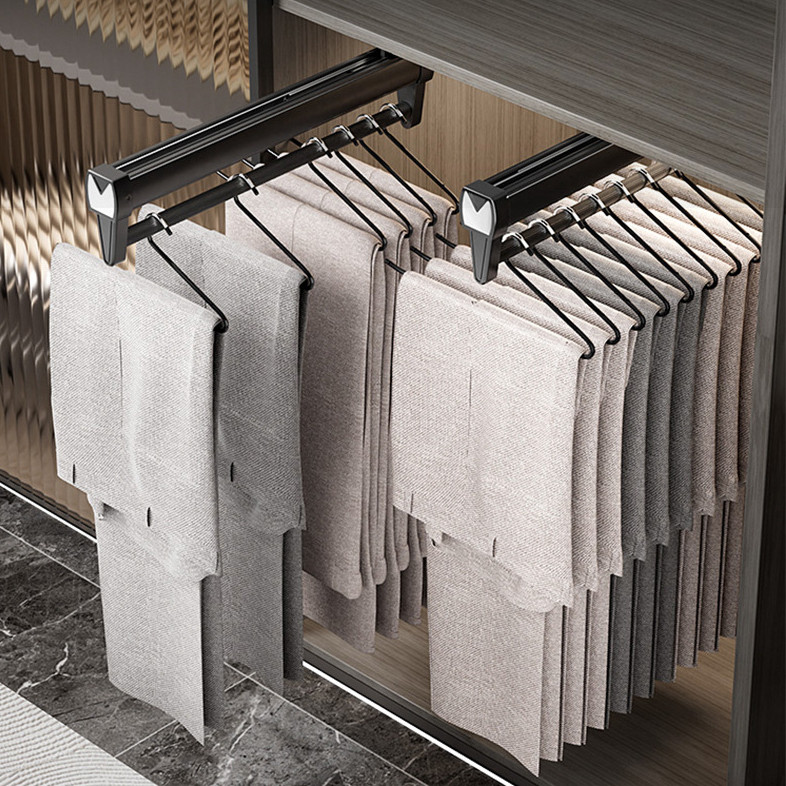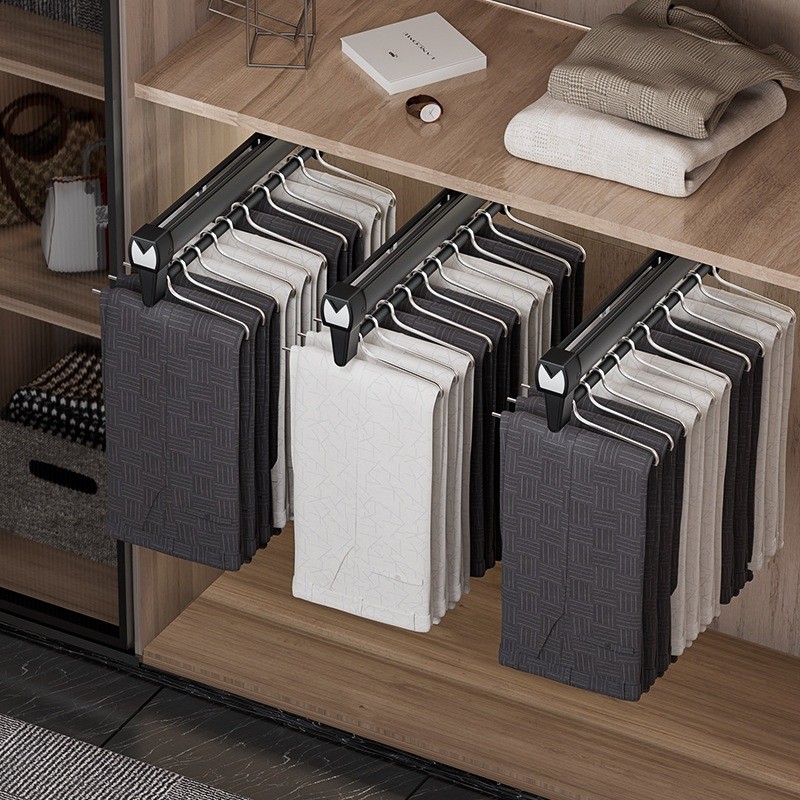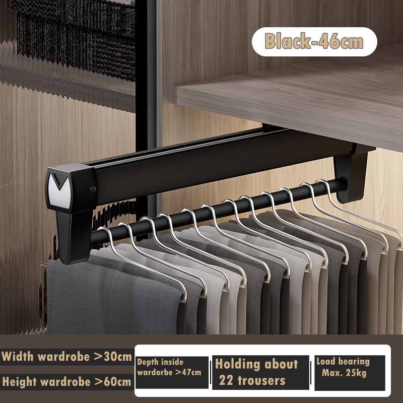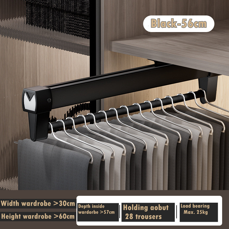 Pull Out Pant Closet Telescopic Wardrobe Rail Hanger Rack Heavy Slide Adjustable Space Saving