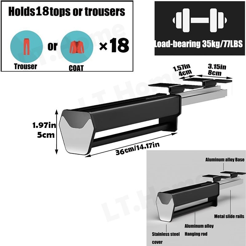 Pull Out Pants Hanger Rack Sliding Wardrobe Rack Organizer Clothes Hanger Rod Rack Pants Drawer