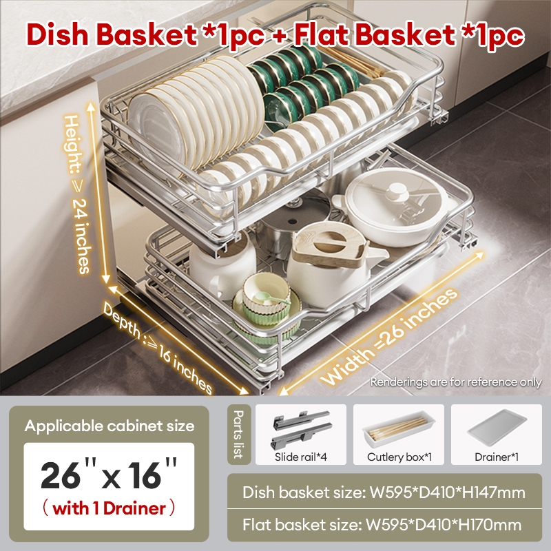 Pullout Basket Kitchen Stainless Cabinet Multiple Inches Pull Out Dish Rack for Cabinet Accessories