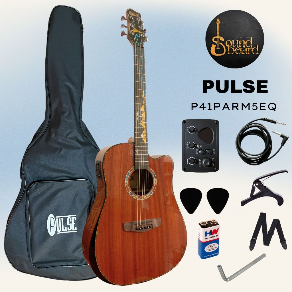 Pulse P41PARM5EQ Acoustic Electric Guitar with Full Setup and Accesories