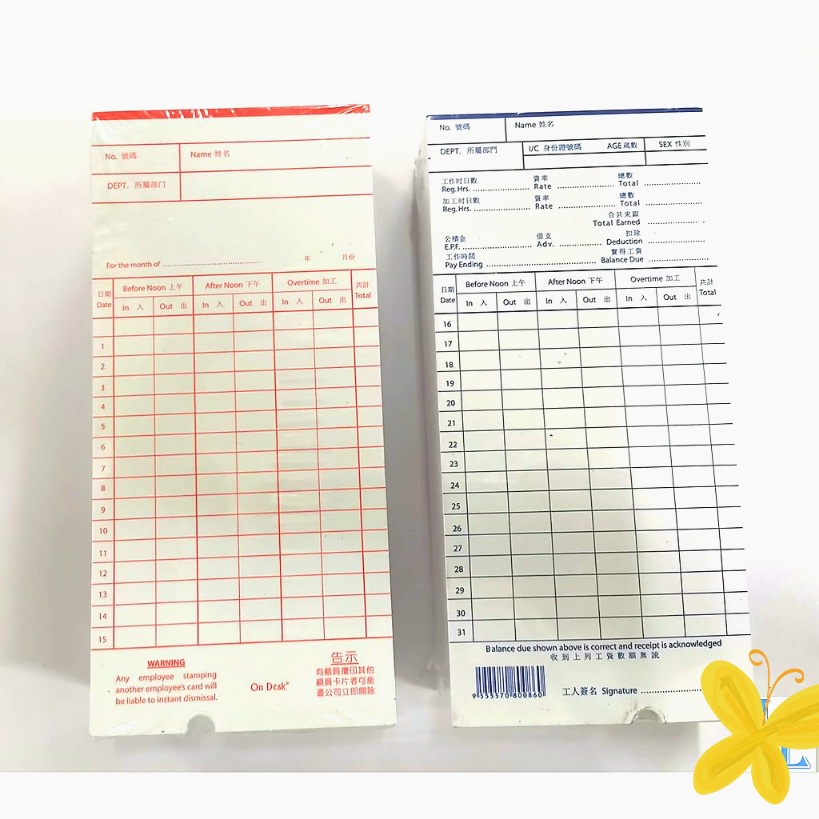 Punch Card/ Attendance Punch Card 100 sheets