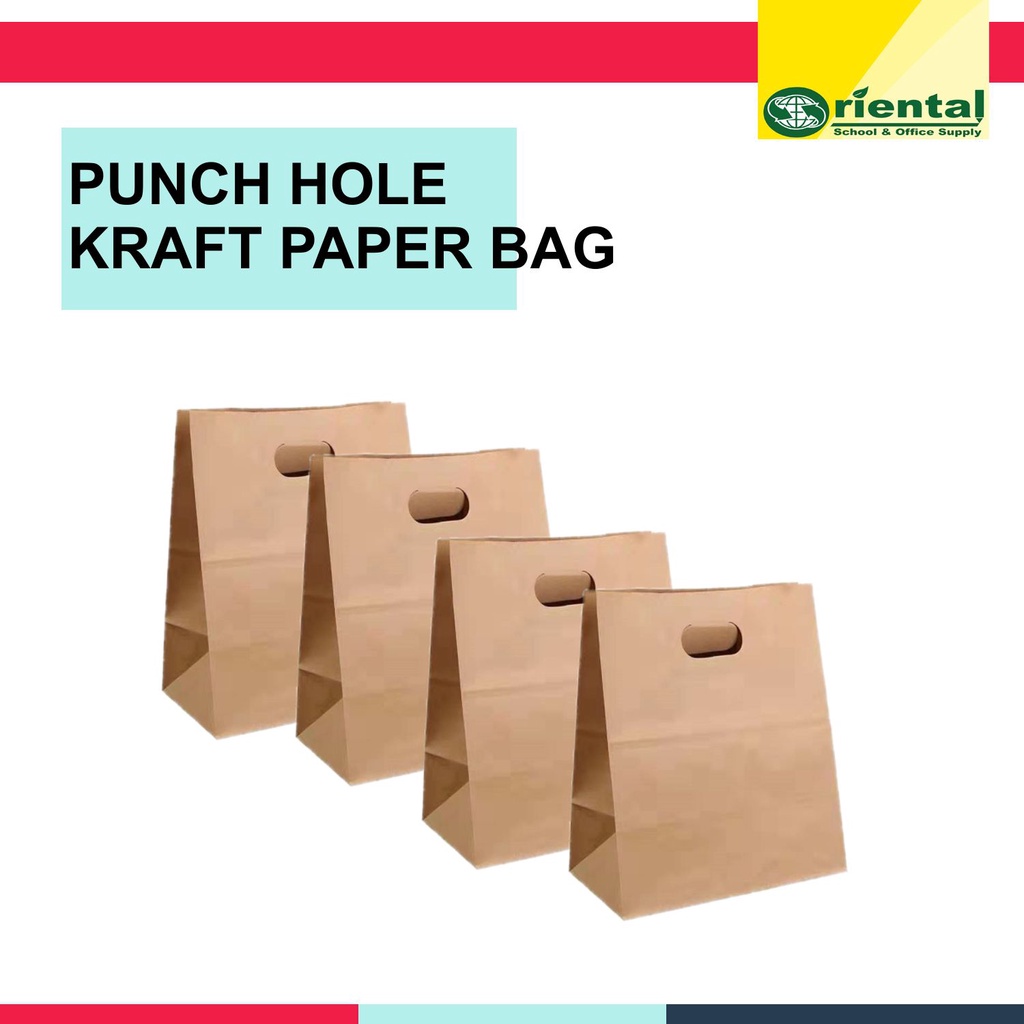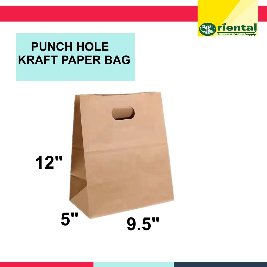 Punch Hole Kraft Paper Bag - Environmental-Friendly -9.5x12x5 inches (65 gsm) - Sold per piece