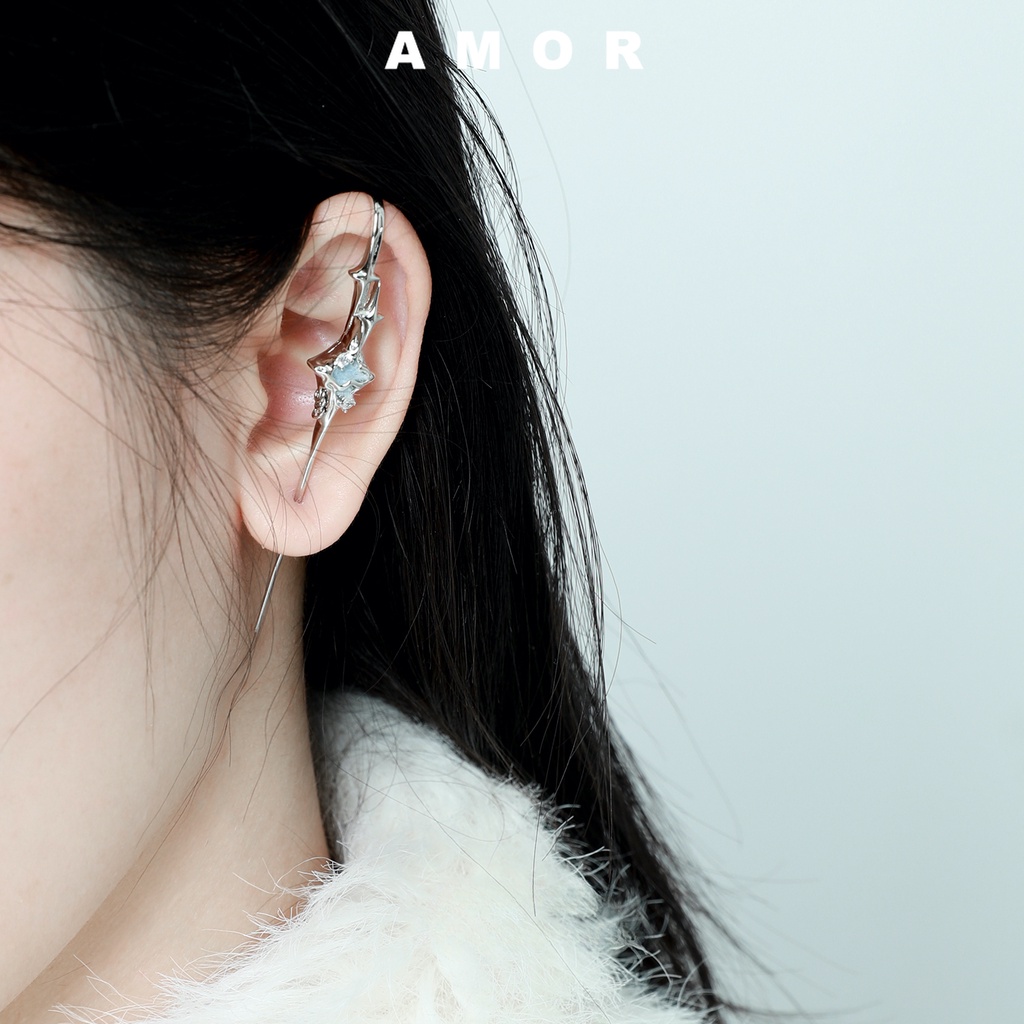 Puncture ear needle star Niche design Earrings, ear suspension, ear bridge