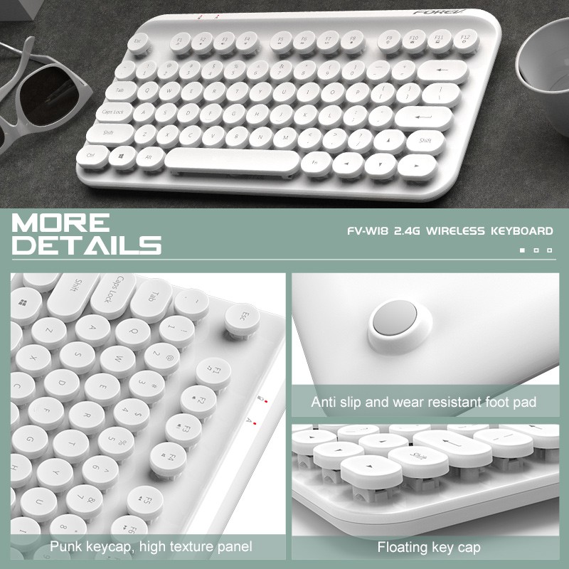 Punk 2.4G USB dangle wireless keyboard business design silence click 78 keys