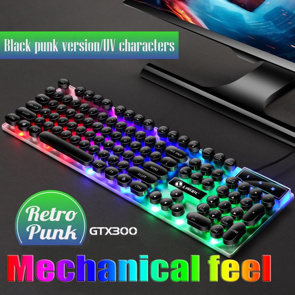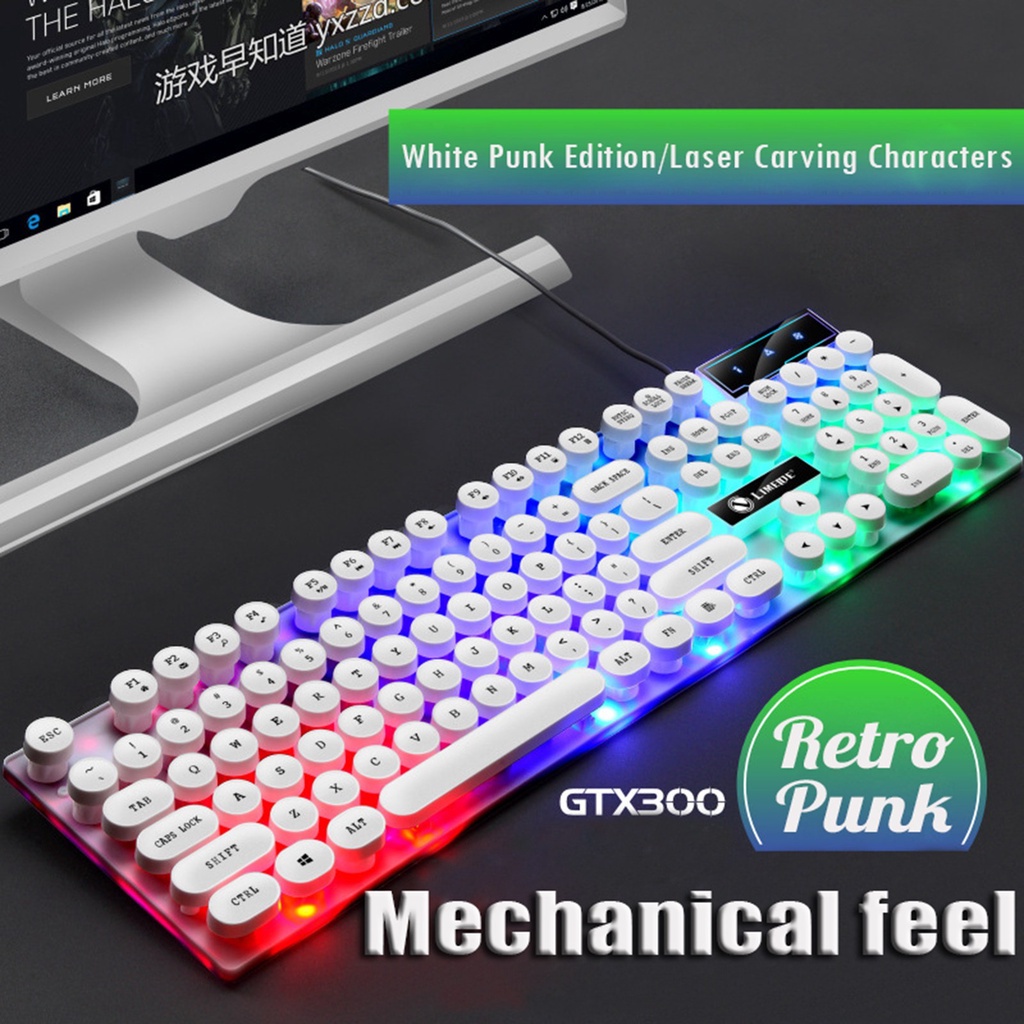 Punk Keyboard and Mouse Set USB Wired Retro Backlit Keyboard Game Suspended Keyboard and Mouse Set TX30 keyboard set