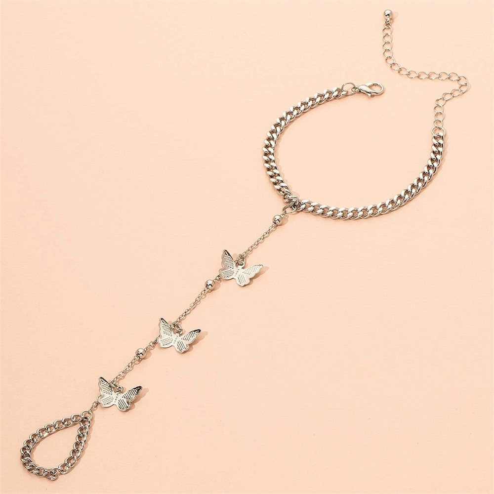 Punk Link Chain Ring Connected Bracelets Gold Color Metal Finger Ring Bracelets Hand Harness Fashion Jewelry Women