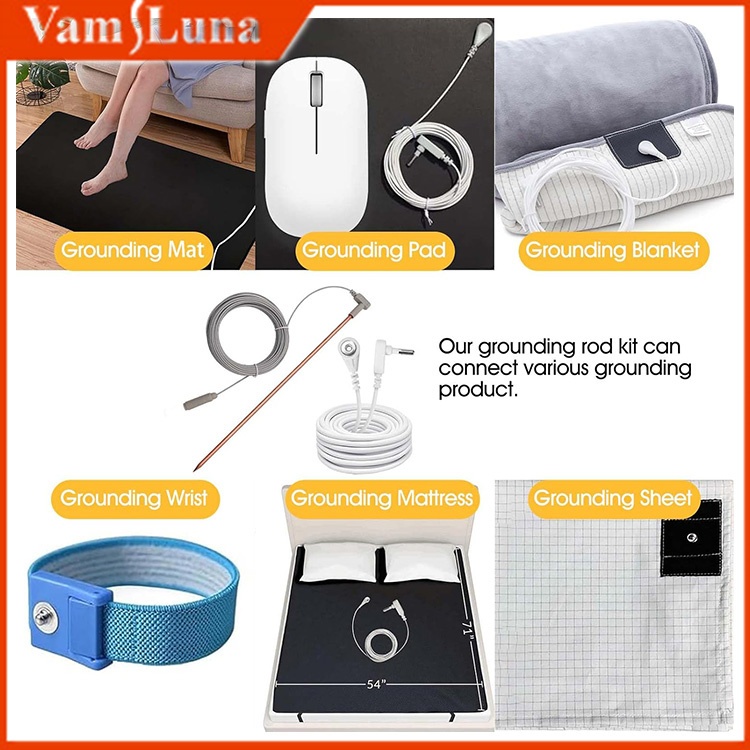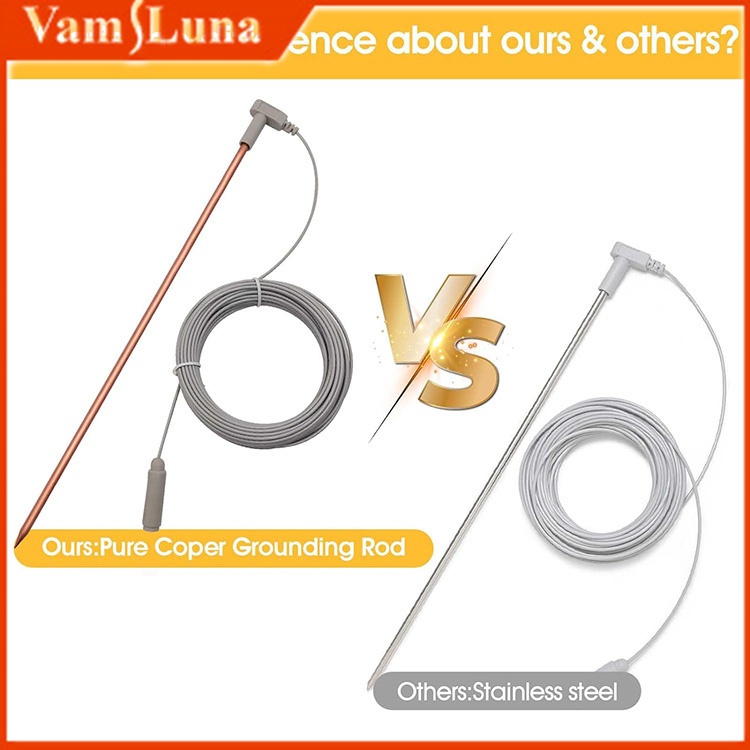 Pure Copper Grounding Rod With 12.2M Female Ground Cord 4.5M Earthing Wire For Grounding Mat Pillowcase And Blankets