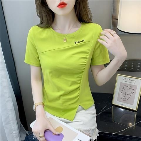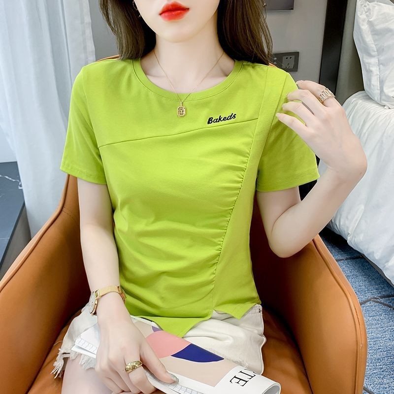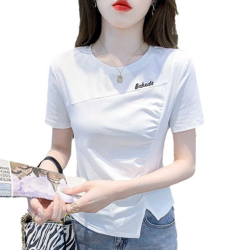 Pure Cotton Blouse for Women Plus Size Summer Korean Style Loose Short-sleeved T-shirts