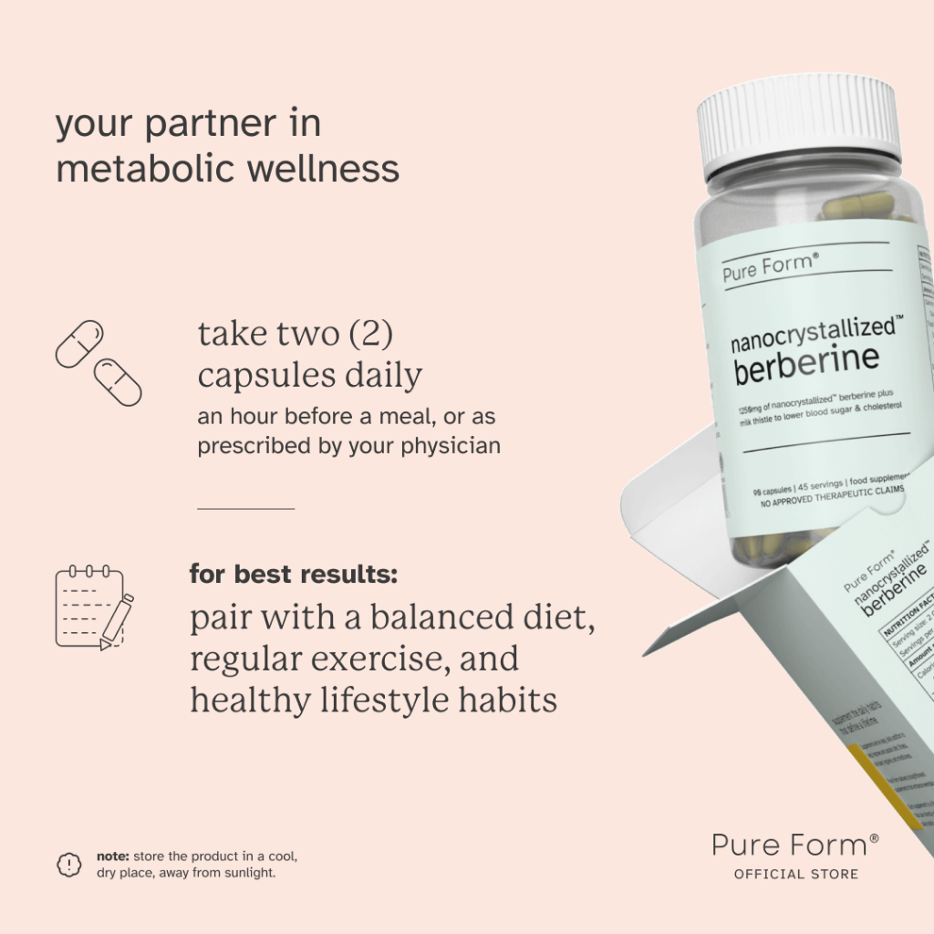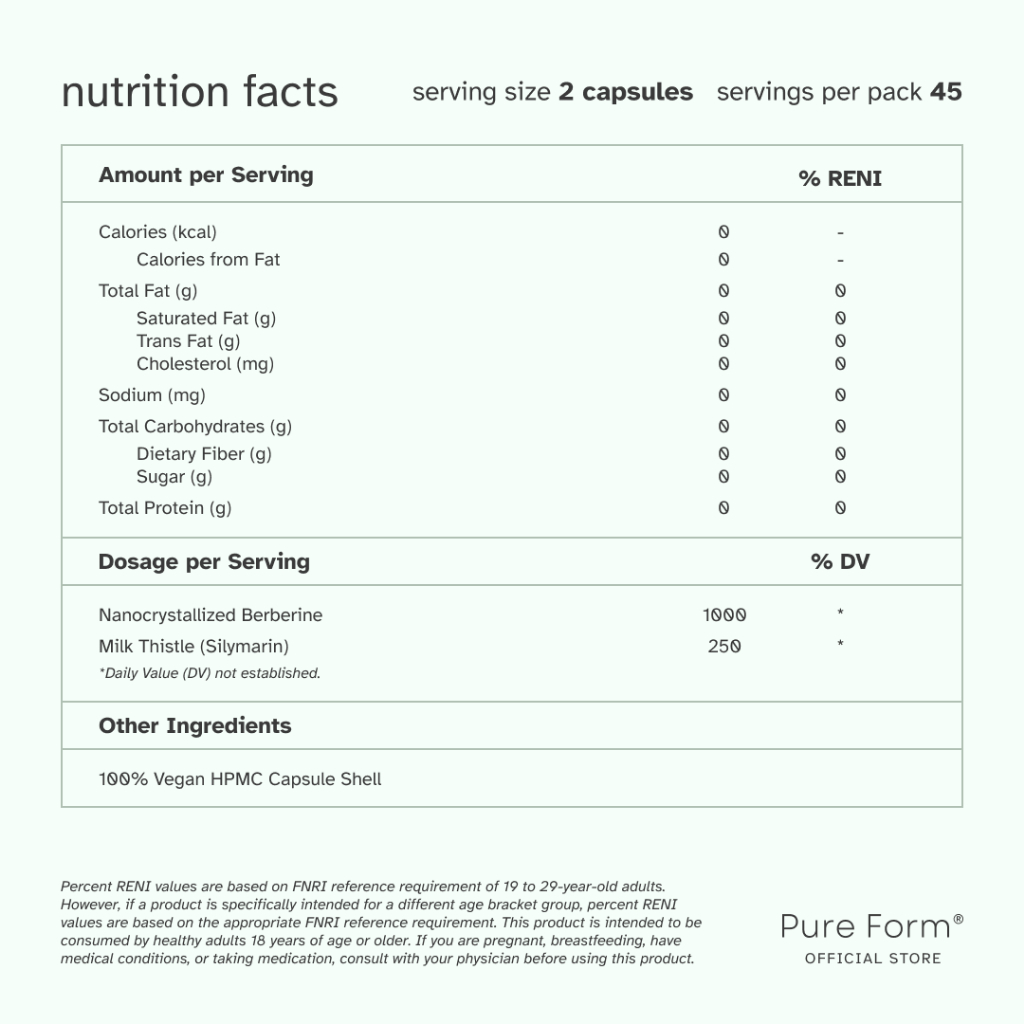 Pure Form® Nanocrystallized™ Berberine | 1250mg Berberine + Milk Thistle | Support Weight Management