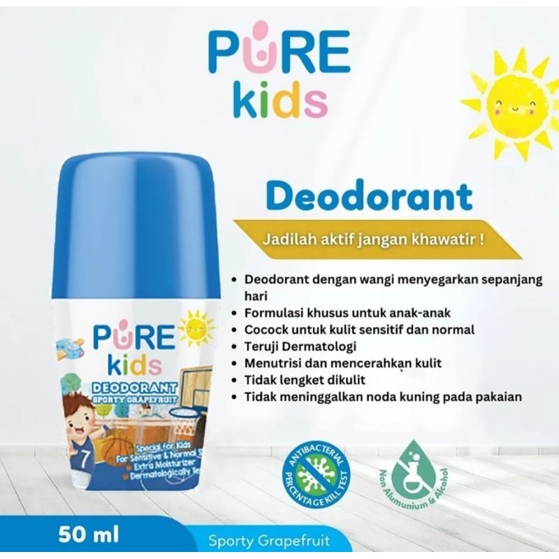 Pure Kids Deodorant for Children and Teenagers Roll on Deo for Sensitive Skin