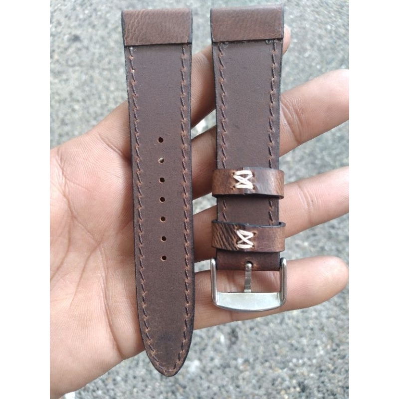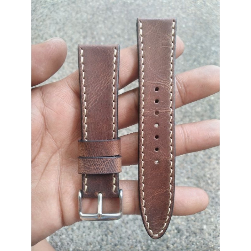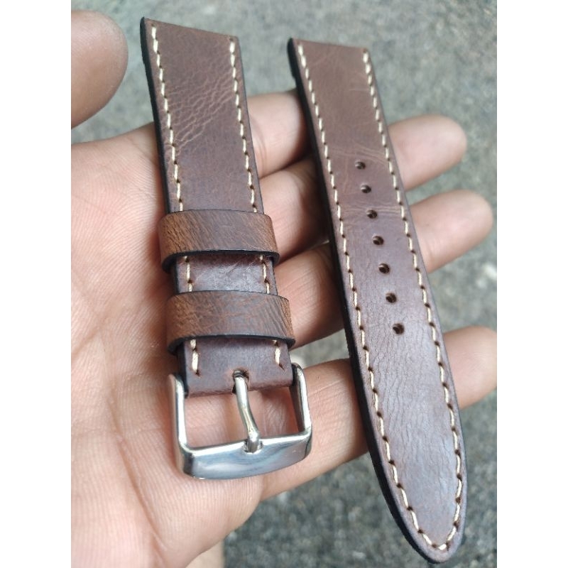 Pure Leather Watch Strap with Stainless Steel Buckle 22mm