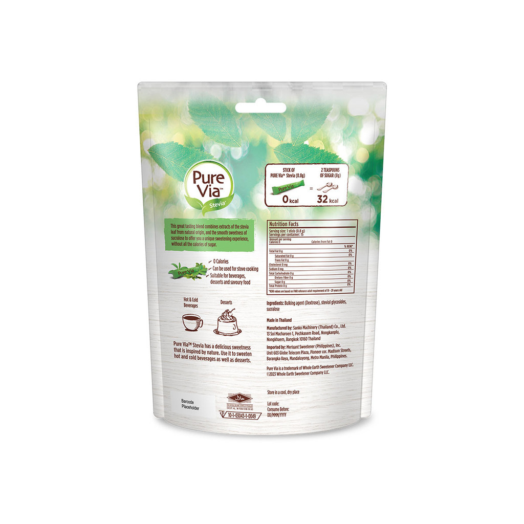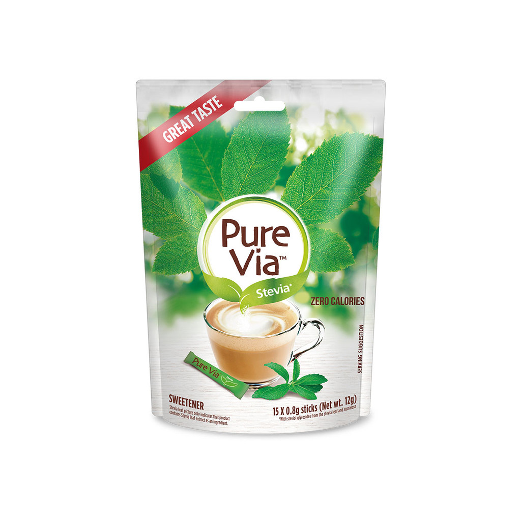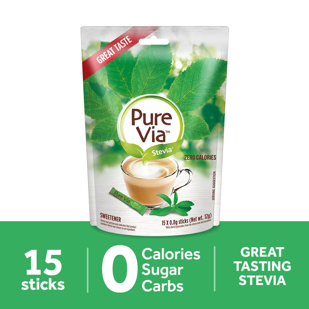 Pure Via Stevia Zero Calorie Sweetener 15 Sticks - 1 Box (Stevia Sweetener, Sugar Free)