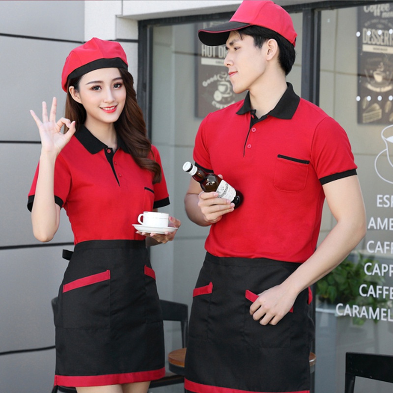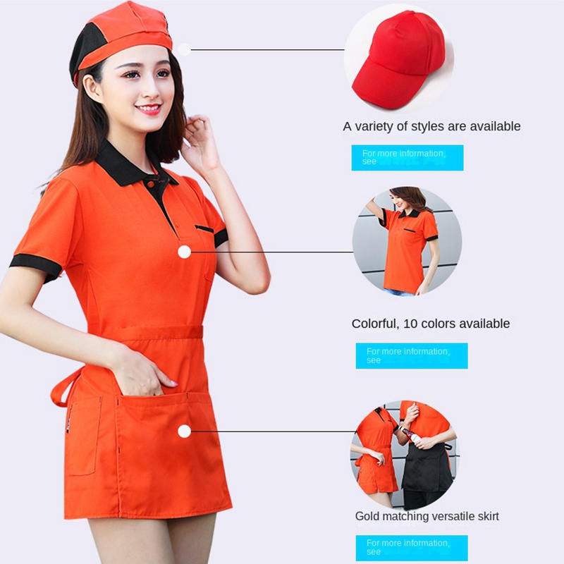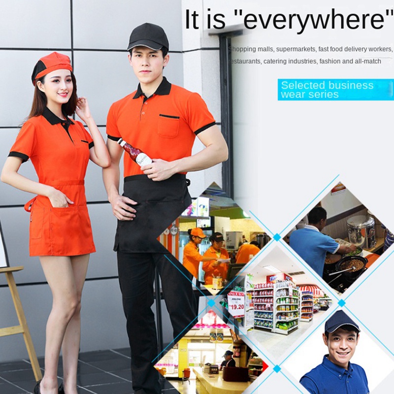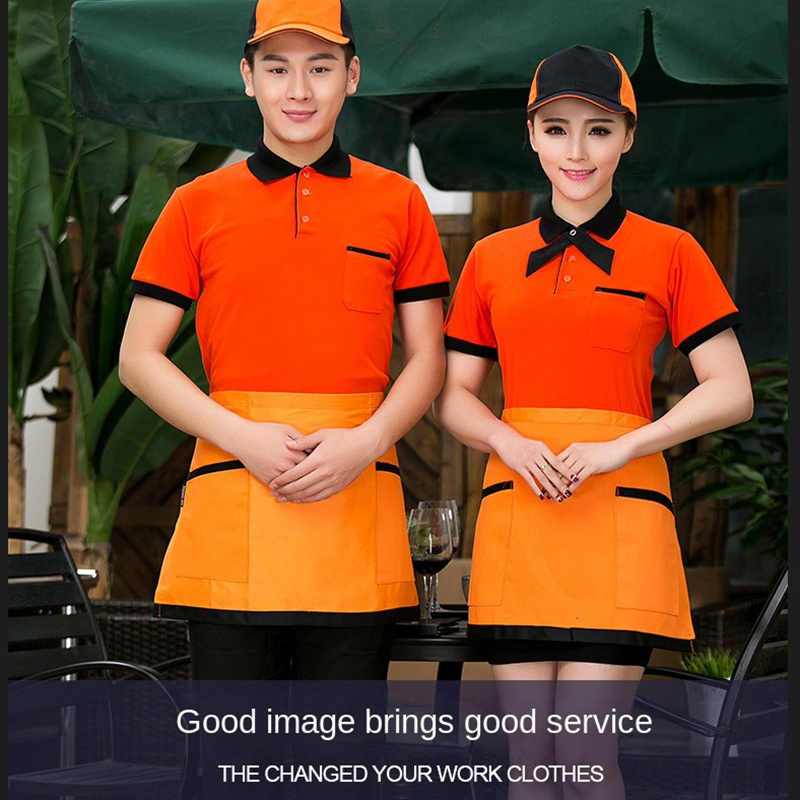Pure cotton breathable short-sleeved uniform staff uniform work uniform hotel restaurant hotel coffee shop catering hot pot fast food restaurant men's and women's work uniform