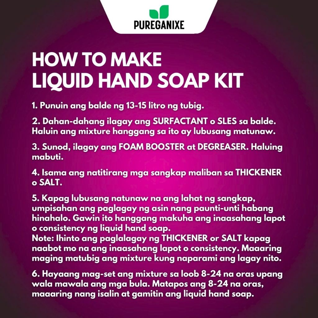 Pureganixe Premix Liquid Hand Soap Kit 17 Liters Yield DIY Hand Wash Liquid Soap Complete Mixture