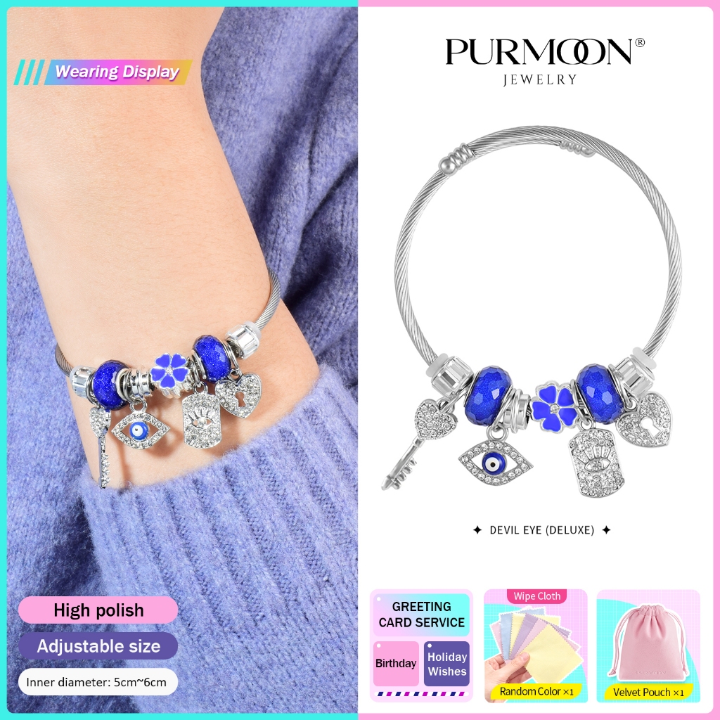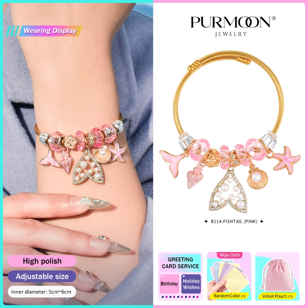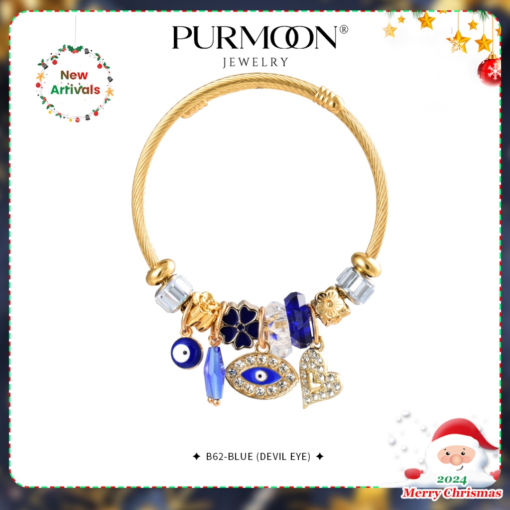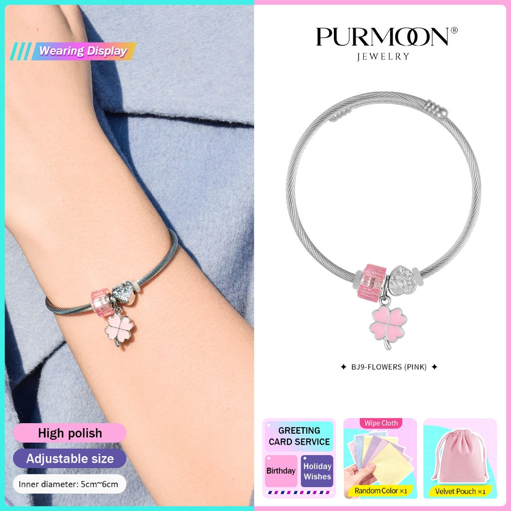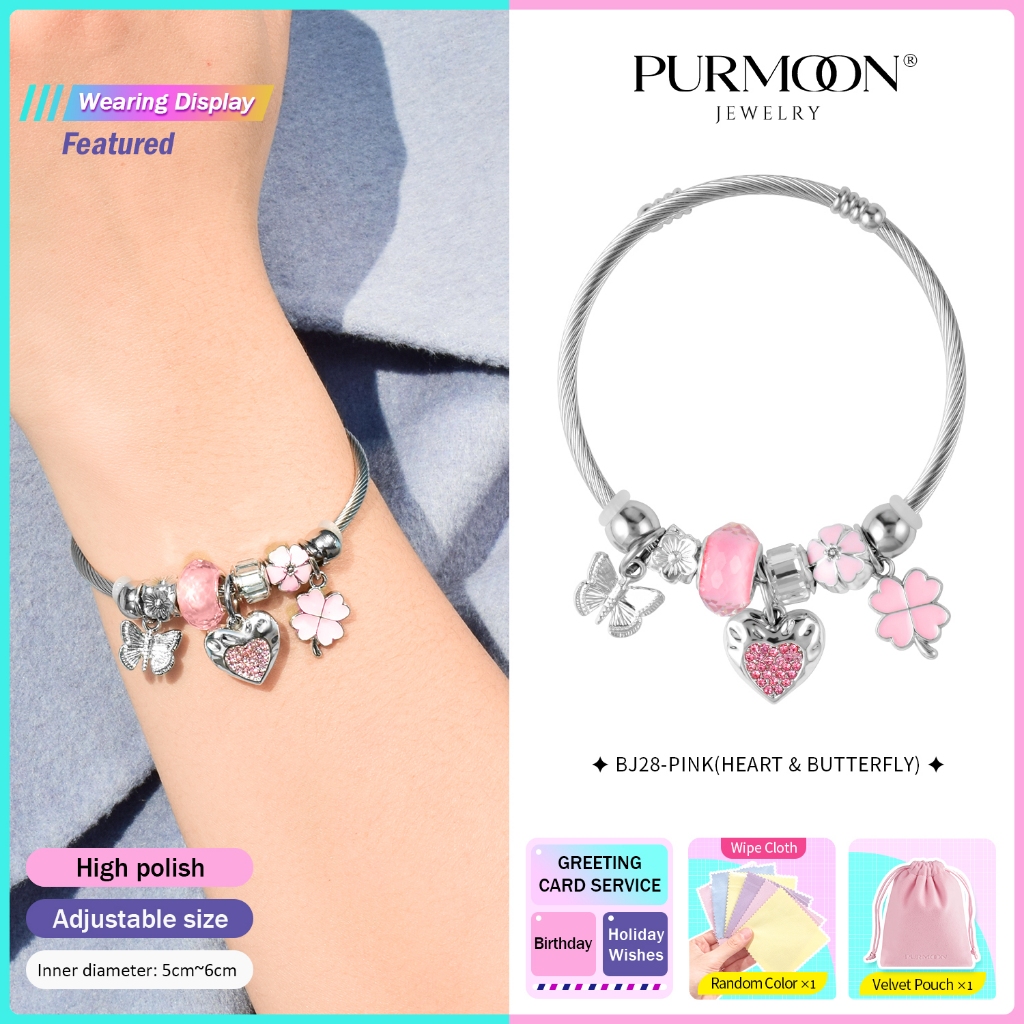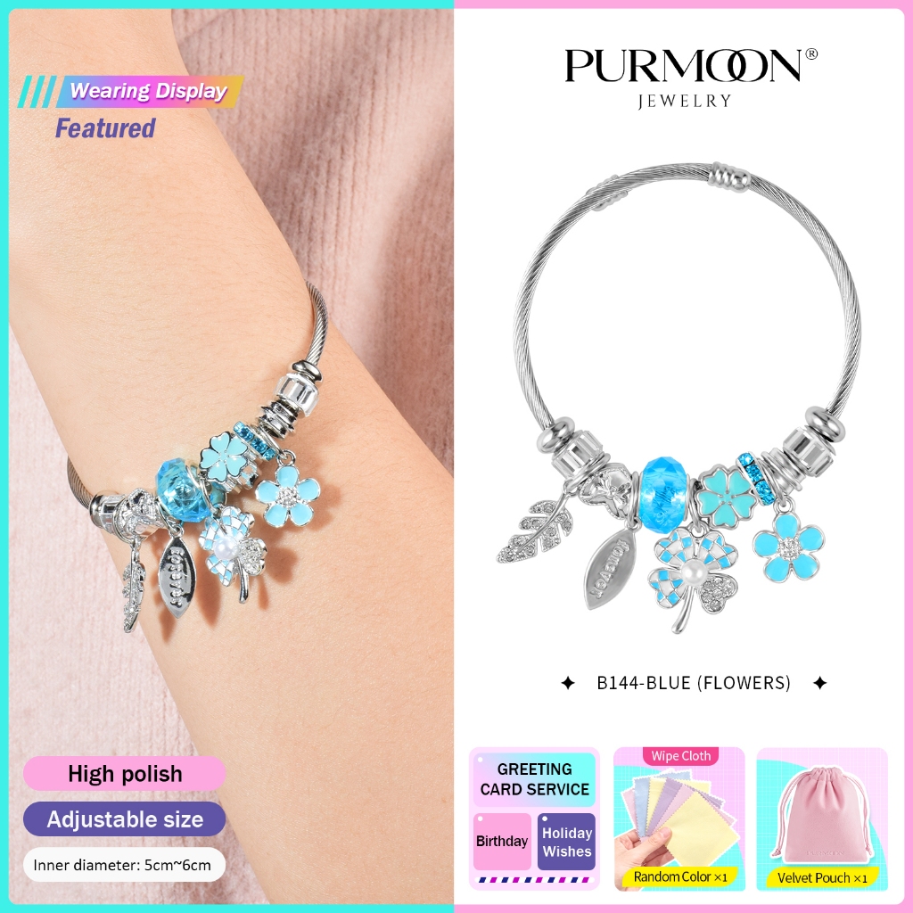 Purmoon Cystal Gold Plated Flower And Butterfly Charm Bangle Bracelet For Women Fashion Lucky Bracelet Jewelry