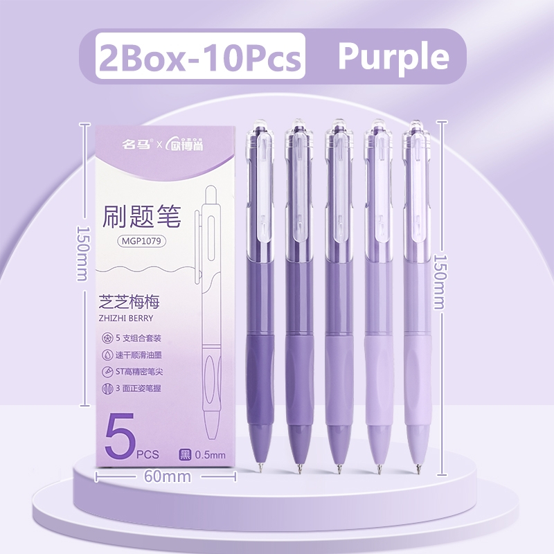 Purple Gel Pen 0.5mm Black Ink Signature Pen Writing Quick-Drying Ballpen Set School Stationery Supplies