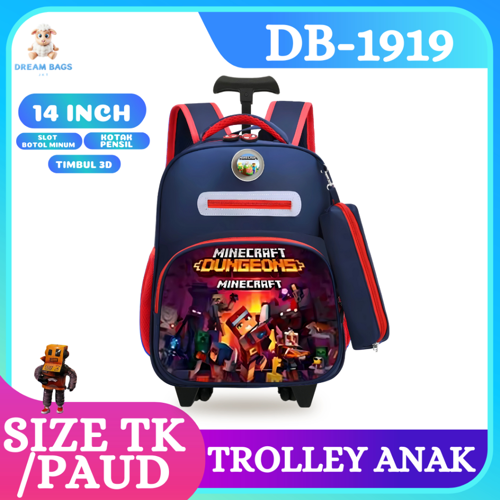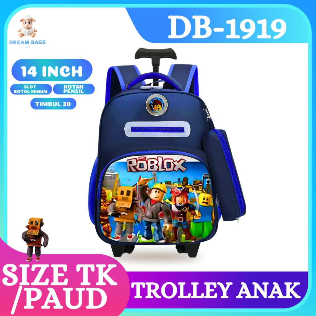 Children's Push Bag for Kindergarten Boys School - Treolley - Suitcase - Roblox Boys Trolley.
