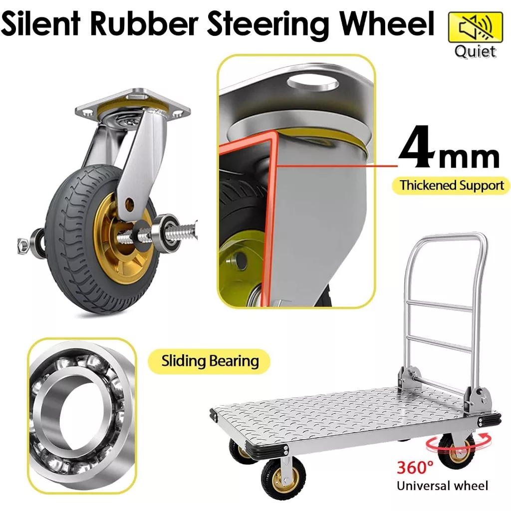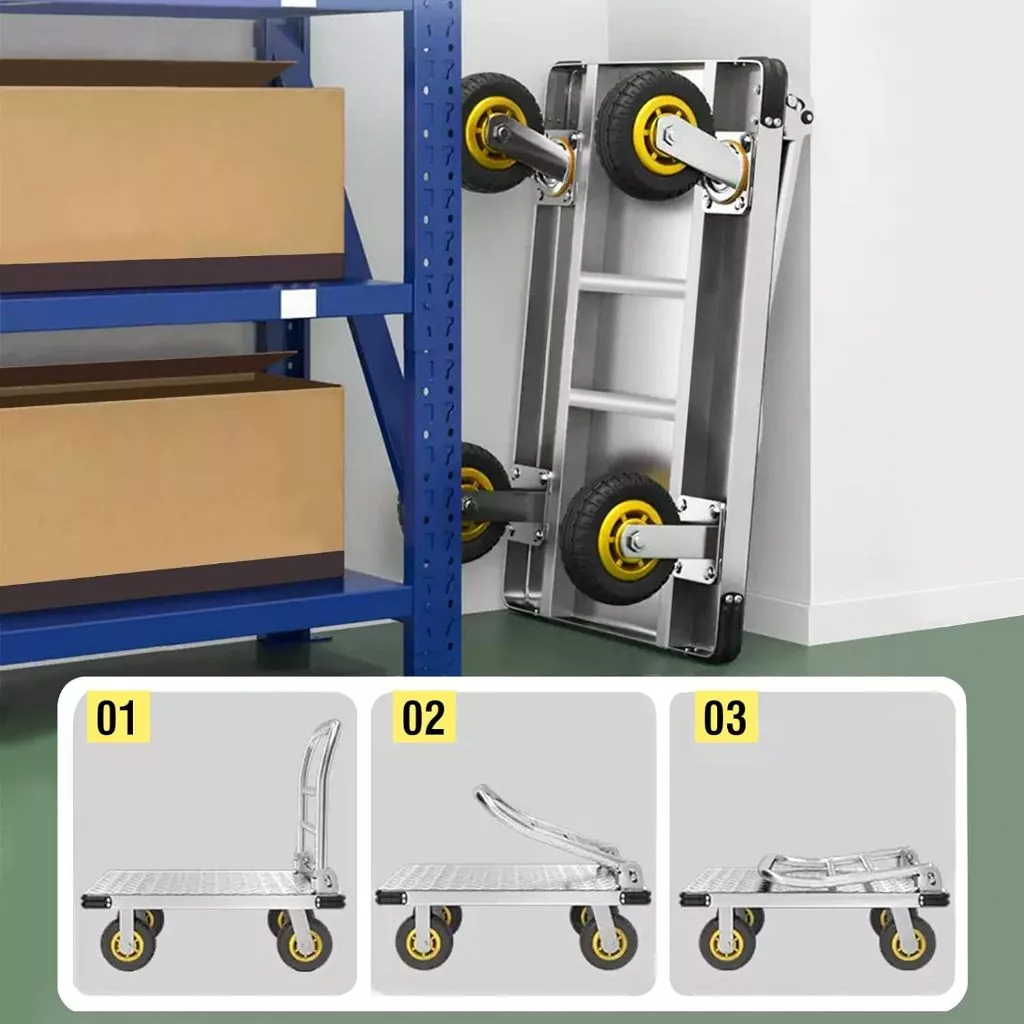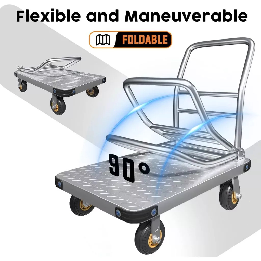 Push Cart Trolley Heavy Duty Platform Super Load Foldable Grocery Trolley Cart Rubber Wheel
