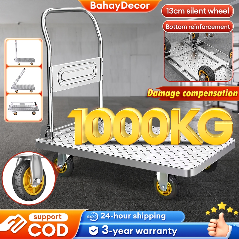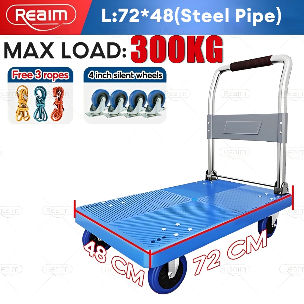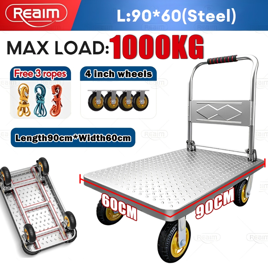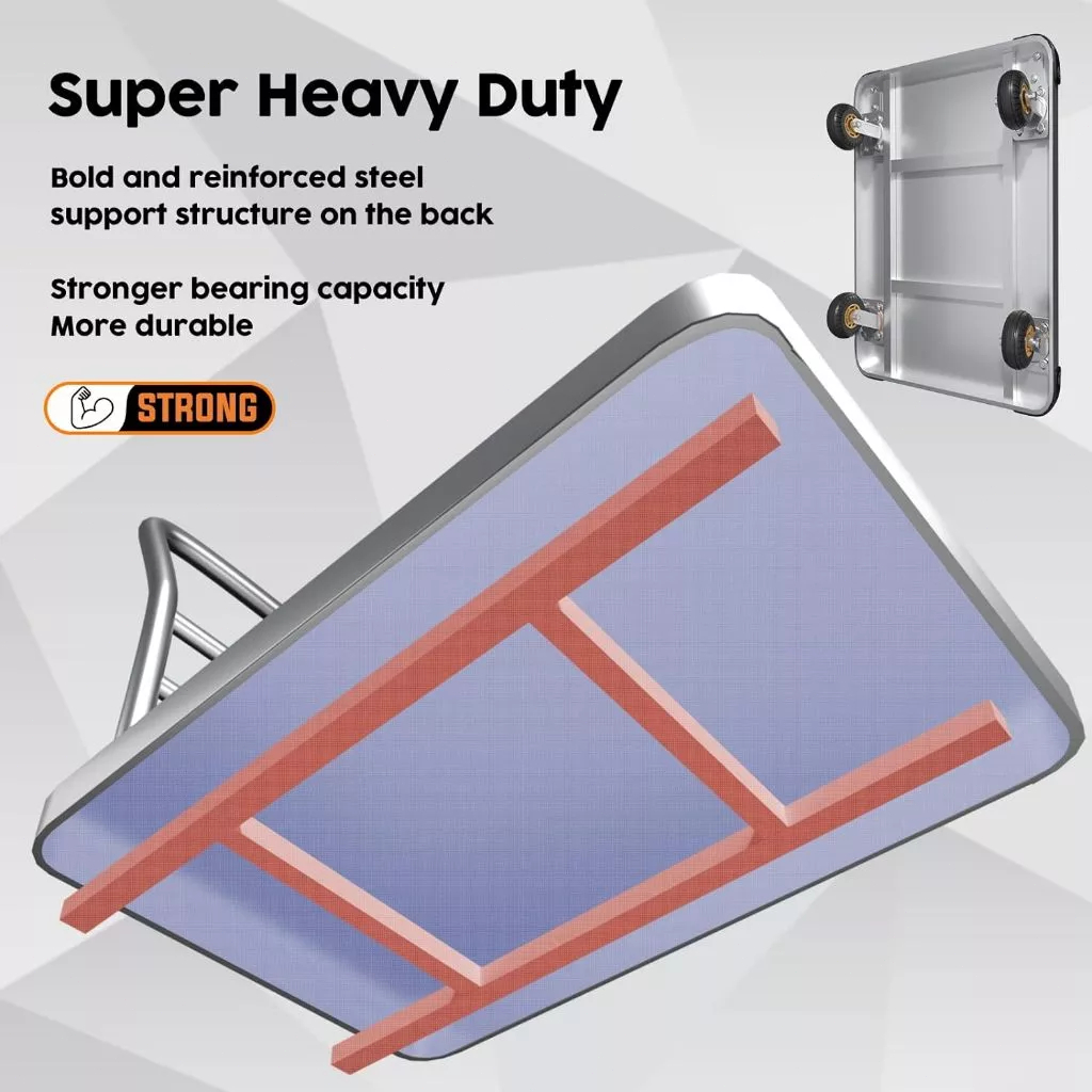 Push Cart Trolley Heavy Duty Platform Super Load Foldable Grocery Trolley Cart Rubber Wheel