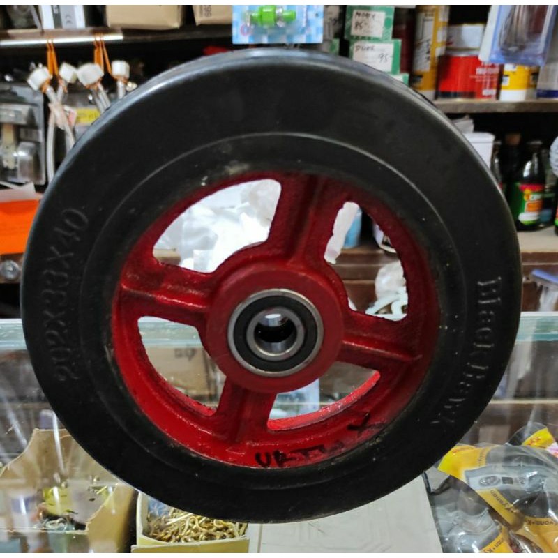 Push Cart Wheel 6" / 8" / 10" Heavy Duty Steel Body Rubber Wheel Bearing 6203 and Axle Shaft