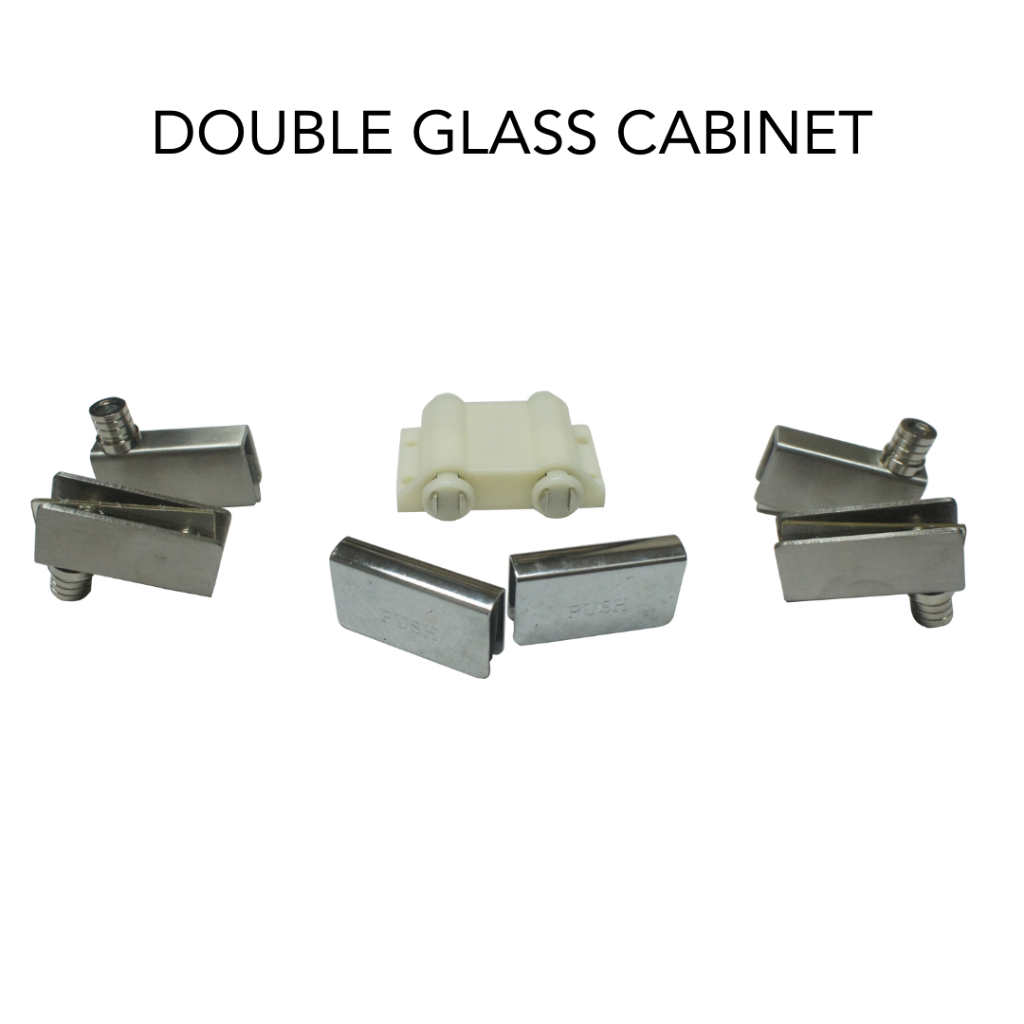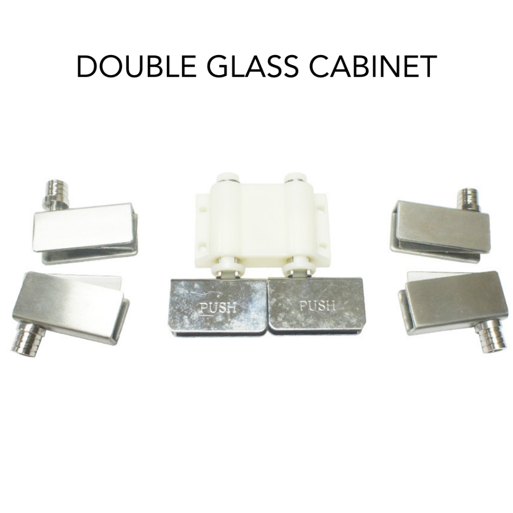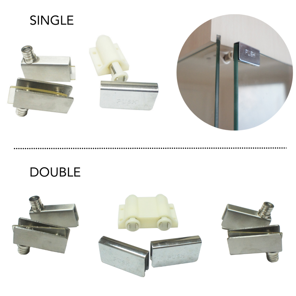 Push Open Stainless Hinge Catch Complete Set for Glass Double And Single Cabinet Door