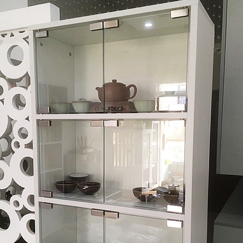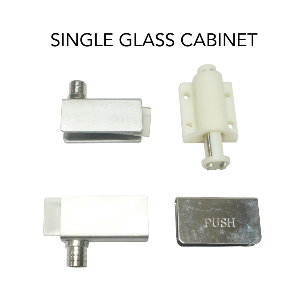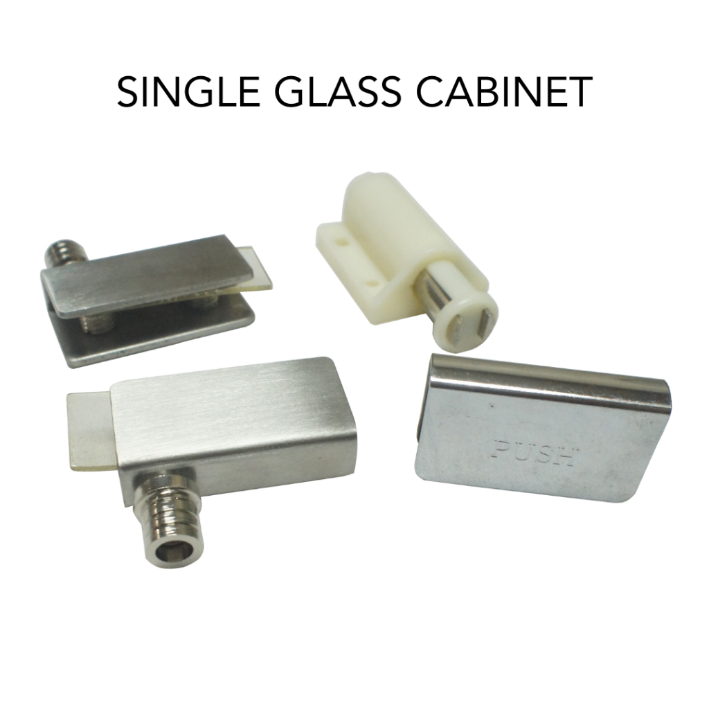 Push Open Stainless Hinge Catch Complete Set for Glass Double And Single Cabinet Door