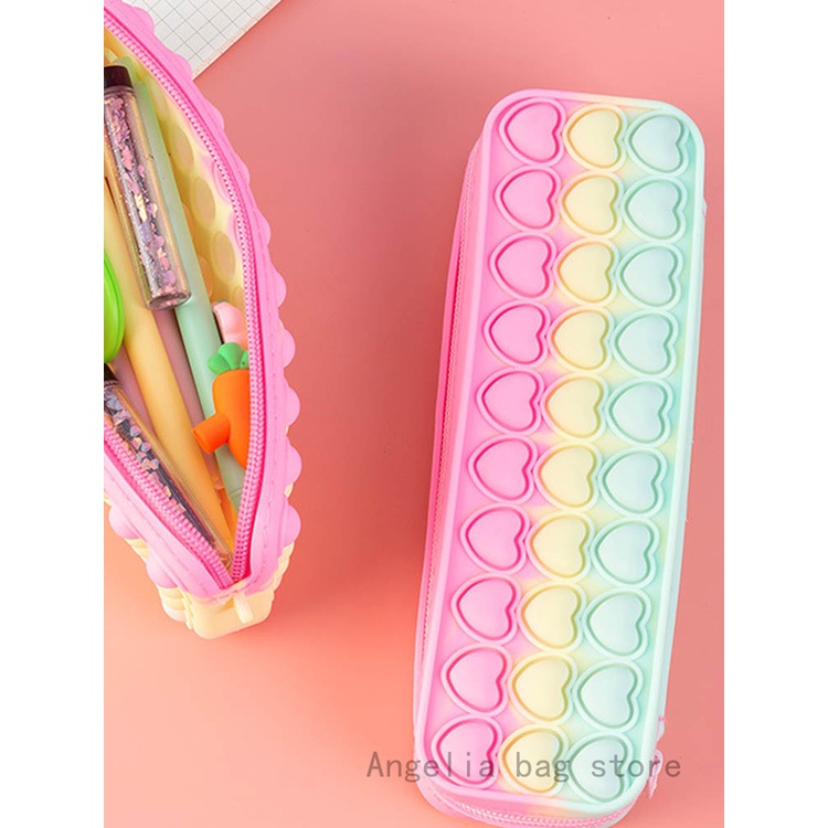 Push Pop Bubble Fidget Bag Pencil Pen Case Stress Relief Popper Sensory Poppet Fidget Toy Makeup Cosmetic Bag Stationery Organizer Portable for School Office