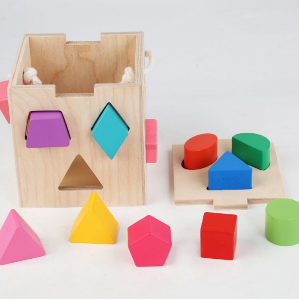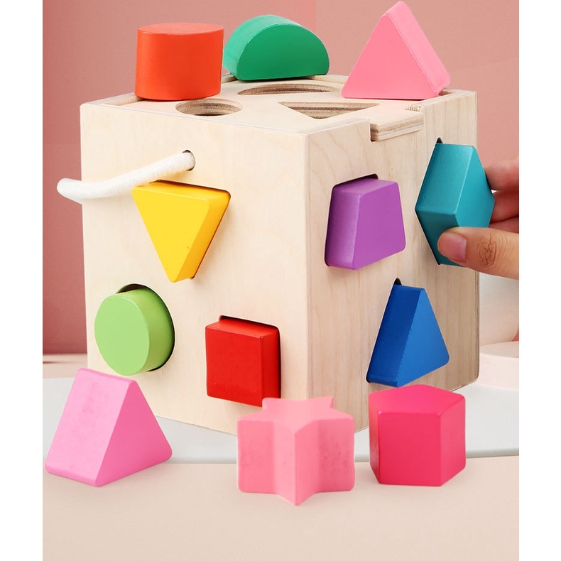 Puzzle Building Block Educational Toys Box Shape Matching Hexahedron with Graphic Cognitive Block