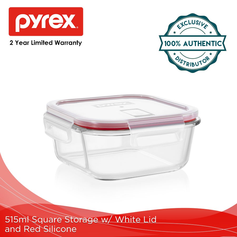 Pyrex 515ml Square Storage With White Lid And Red Silicone