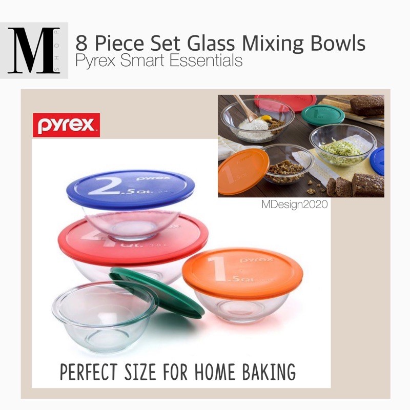 Pyrex 8 Piece Set Glass Mixing Bowl