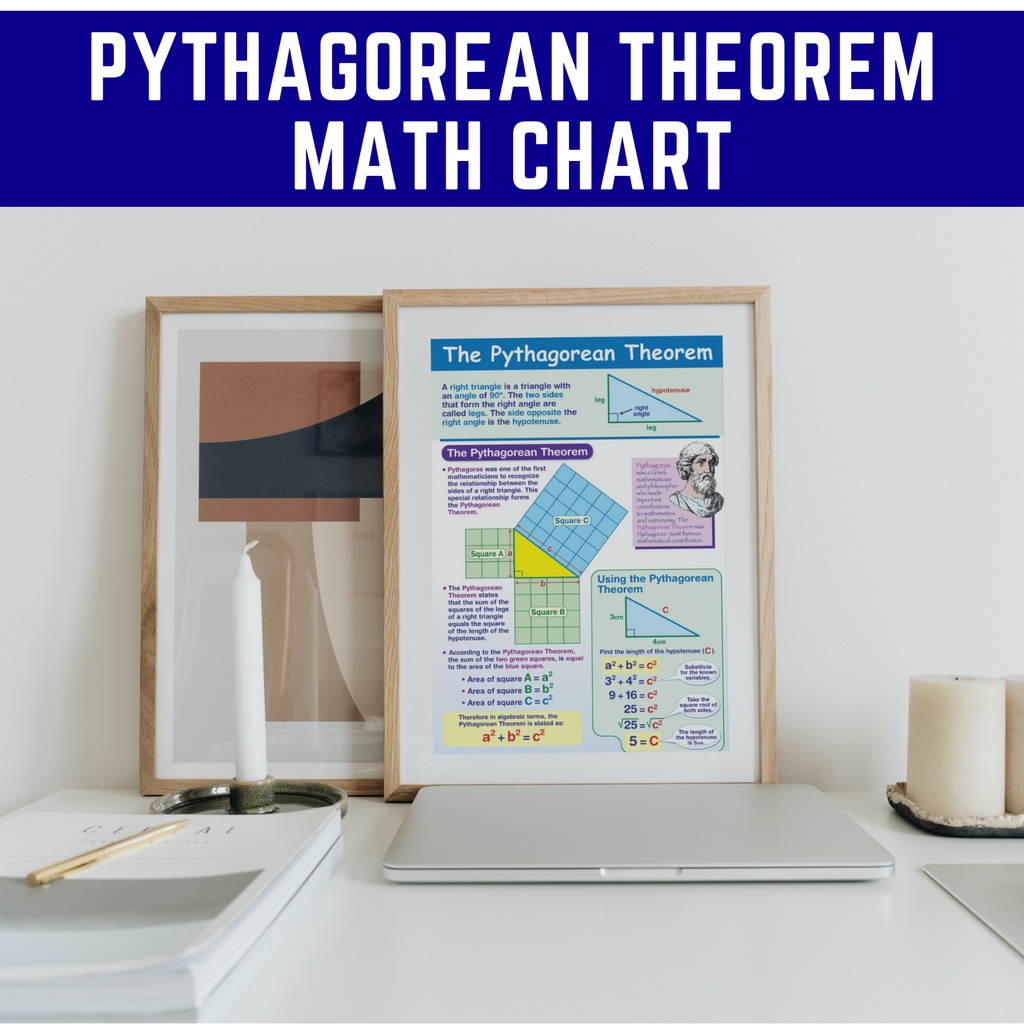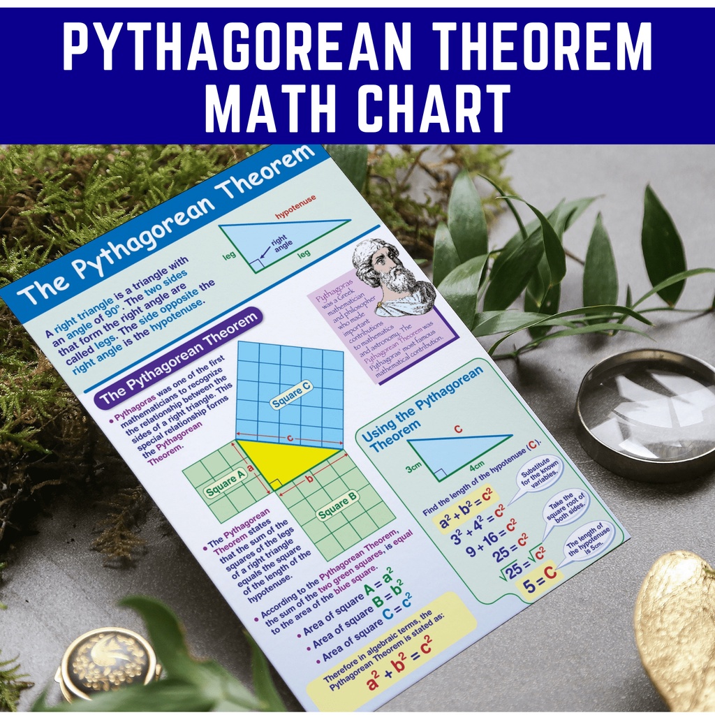 Pythagorean Theorem Math Chart, Educational Laminated Wall Chart for kids, A4 size