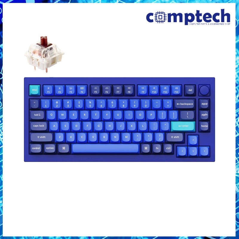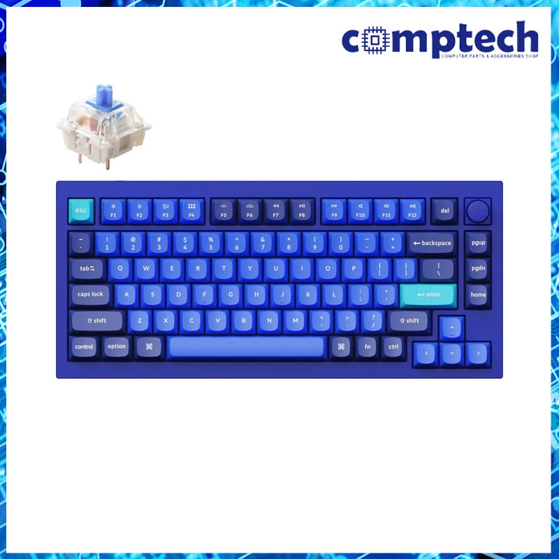 Q1 - Full Assembled Knob, RGB Blacklight LED, Hot-Swap, Aluminum, 75% Layout, Wired, Blue Frame