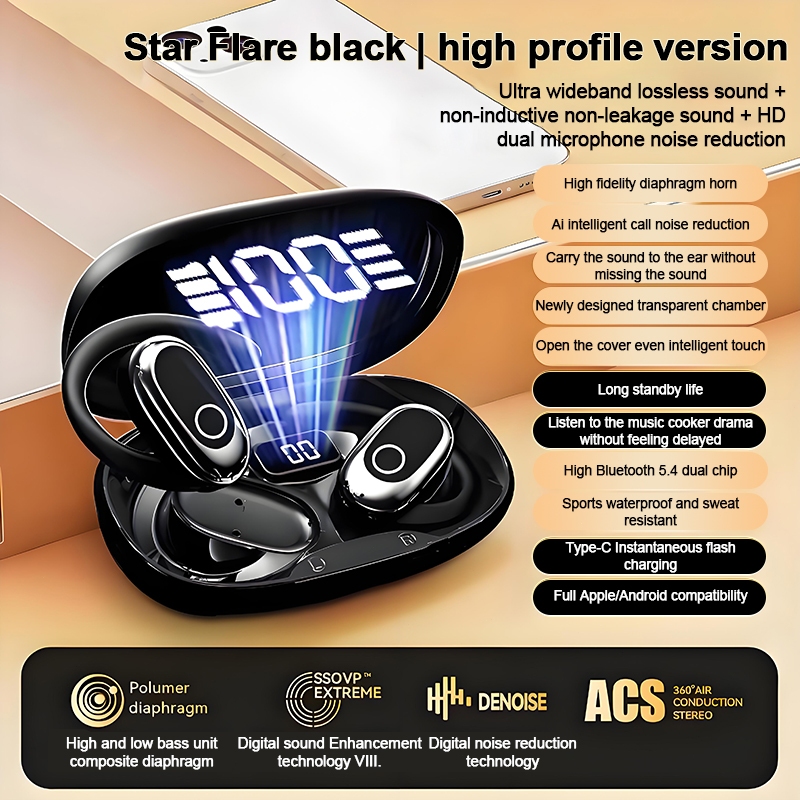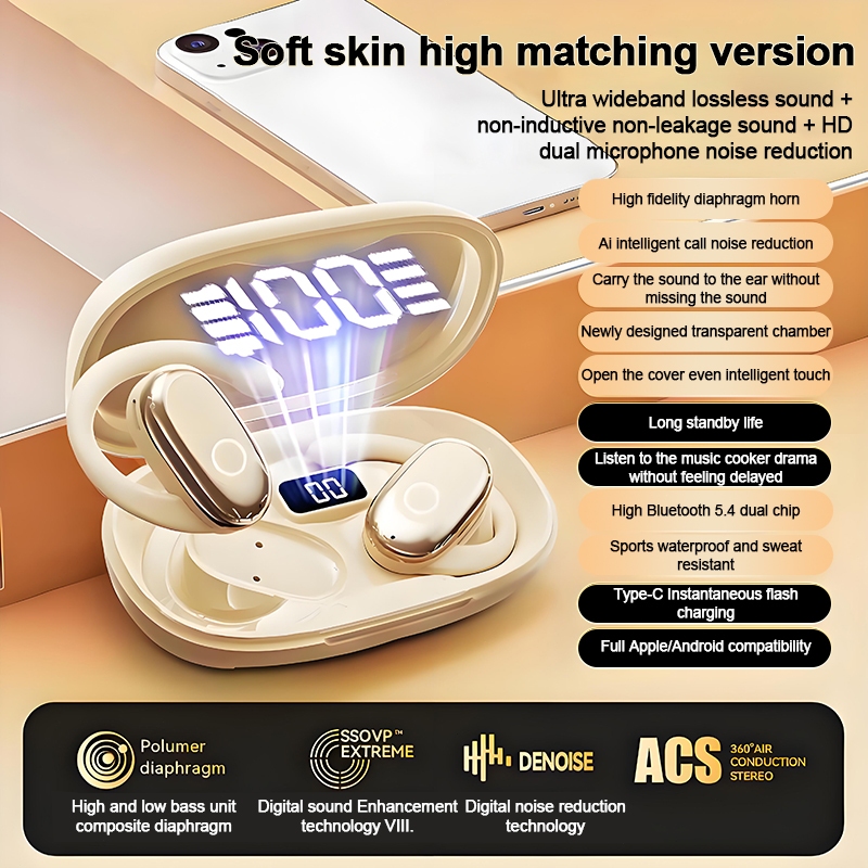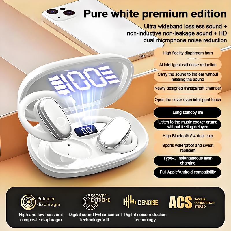 Q13 Bluetooth Clip-On Eearphones Open Wearable Stereo Sound Wireless Bluetooth Headphones With Mic